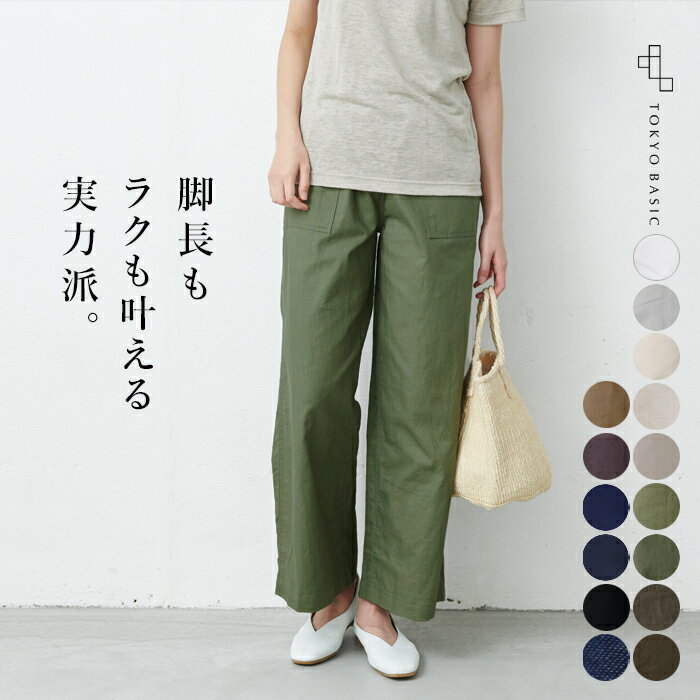 ワイドパンツ レディース 夏 ベイカーパンツ 日本製 40代 50代 60代 女性 ファッション リネン コットン 綿麻 大きいサイズ きれいめ カーキ ゆったり カジュアル 天然素材 大人服 ベージュ ネイビー 紺 ブラック 黒 ライトグレーTOKYO BASIC リネン&コットン リネン&コットン ベイカー ワイドパンツ SIZES・フリー(M-L)・LL カラー ホワイト(カルゼ)・ライトグレー・アイボリー(カルゼ)・グレージュ(カルゼ)・チノベージュ(カルゼ)・カーキ・オリーブグリーン(カルゼ)・オリーブ・モカベージュ(カルゼ)・ダークパープル(カルゼ)・ネイビーブルー(カルゼ)・ネイビー・ブラック(カルゼ)・ライトインディゴ サイズ サイズ計測方法はコチラ>>> 原産国 日本製 素材 綿75%、麻25%(ライトインディゴは綿100%) ※“ライトインディゴ”は、素材の特性上、染料が色落ちすることがありますので、他のものと一緒に洗わないでください。また汗や雨などでぬれた状態、及び単に摩擦によって色落ちし、他の衣類などに色移りする事がありますのでご注意ください。色落ちはインディゴ染めの良さとして、その変化をお楽しみ頂ければと思います。 洗濯表記 手洗い メール便 × 特徴 綿麻素材のパンツはスラリと見えて、ラクな着心地でずっと履いていたい実力派。カジュアルだけど、上質感があって、普段がおしゃれになるパンツです。 ※画面上の商品の色は、お使いのパソコンモニターの設定や照明により、実物と異なる場合があります。 7,890円 税込 送料別 カードOK レビュー206件 TOKYO BASIC (東京ベーシック) ![]() | ||