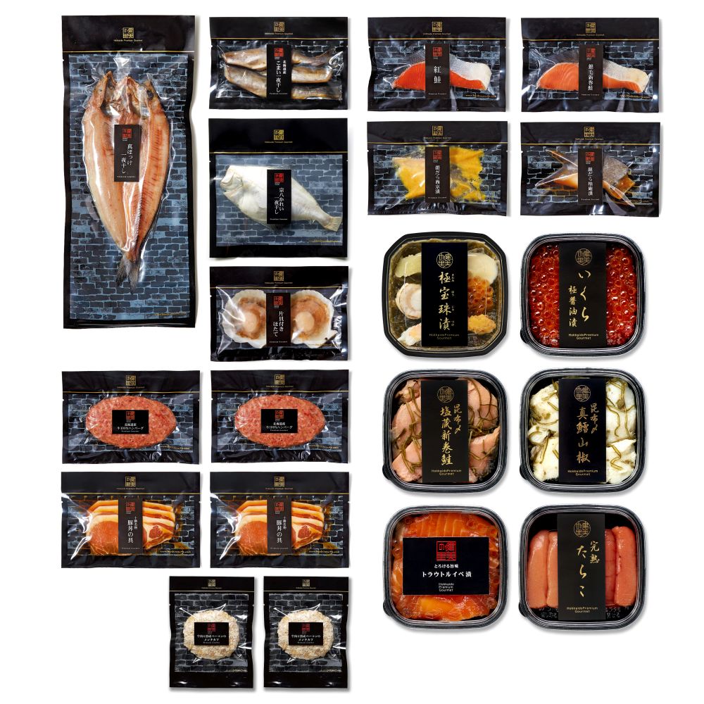 健美の里 北海道 極宝珠漬セットF 商品内容 真ほっけ【羅臼産】×1 こまい【北海道産】3尾入×1 宗八かれい【北海道産】×1 ほたて片貝【北海道産】2枚入×1 紅鮭【南千島産】80g×1 新巻鮭【北海道産】80g×1 銀だら西京漬【アメリカ産】80g×1 銀だら柚庵漬【アメリカ産】80g×1 ハンバーグ【北海道産牛100%】150g×2 ハンバーグソース30g×2 豚丼の具【国産】130g×2 豚丼のたれ30g×2 牛肉と熟成ベーコンのメンチカツ×2 極宝珠漬50g 完熟たらこ60g いくら極醬油... 13,056円 税込 送料別 カードOK ぷちぎふと工房 コンサルジュ ![]() | ||