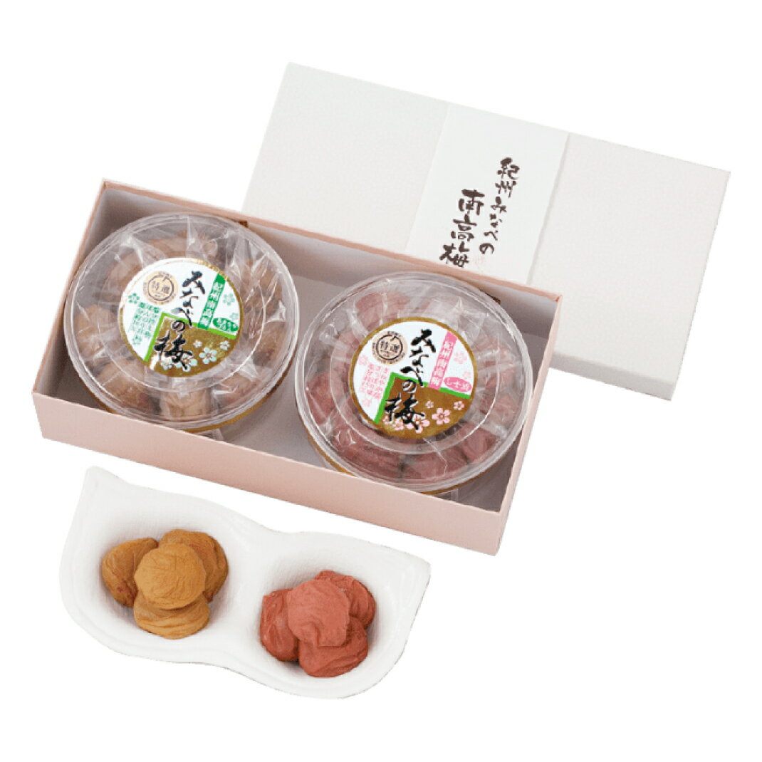 お返し、お祝い、ご挨拶、お中元(御中元)、お歳暮(御歳暮)など、想いがつまった贈り物。 その気持ちを丁寧に熨斗(のし)を掛け、包装し、大切にお届けします。 おしゃれな詰め合わせギフト・贈り物として、内祝いや引っ越し挨拶、引っ越し挨拶ギフト、出産祝い、出産内祝い、内祝い、快気内祝い、結婚祝い、お祝い返し、お礼、退職祝い、退職挨拶をはじめ、子供と楽しめるおもちゃなどお子様・お孫様への誕生日プレゼントにもおすすめです。 ブラックフライデー、クリスマスのご褒美ギフトにも。 「人と人」、「想いと想い」を繋ぎ、紡いでゆく贈りものをいろは堂はご提案いたします。 ** 【 価格から探す 】はこちら ** 商品説明・素材 モンドセレクション金賞受賞の梅干しです。 「特選」南高梅を使用。 塩分約3%の低塩梅干を中心に4種取り揃えています。 商品情報 【セット内容】 梅干し12粒 ・さらり ・こくの梅 ・ふじの ・みつふる ×各3粒(約240g) 【サイズ】約186×216×46 mm・約400g 【備考】※パッケージ、商品内容など、予告無く変更する場合がございます。 広告文責 株式会社いろは堂(TEL:086-241-0168) 3,240円 税込 送料別 カードOK いろは堂本店 ![]() | ||