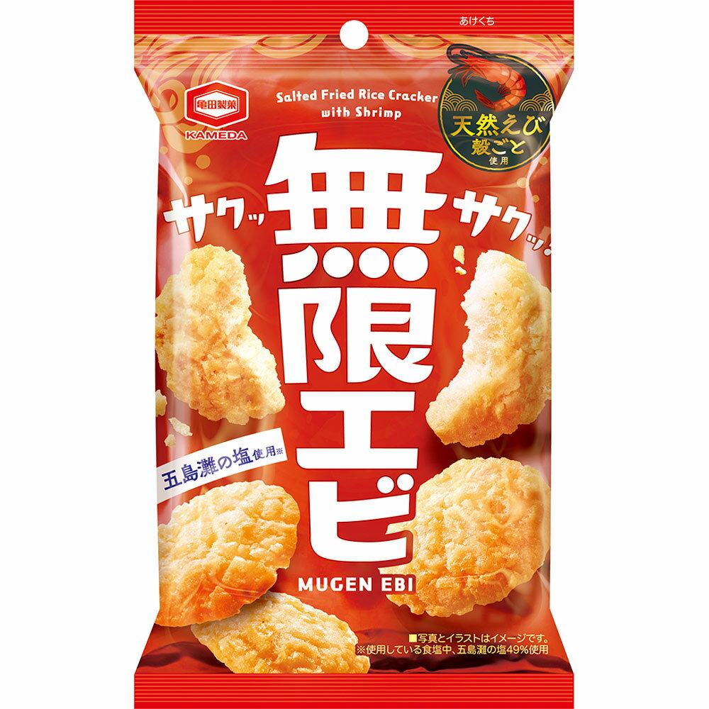 1008. 亀田製菓 無限エビ 31g ※写真はイメージです。実際にお届けする商品とパッケージなどが異なる場合がございます。商品の特徴エビの風味が無限に広がる、サクサク揚せん天然エビを殻ごと練り込み、高温でサッと揚げたサクサク生地、噛めば噛むほどエビの味わいが広がるおいしさです。小腹満たしに最適な食べきりサイズ。原料・成分等(原材料)植物油脂(国内製造)、うるち米(米国産)、でん粉、食塩、えび、酵母パウダー、香辛料/加工でん粉、調味料(アミノ酸等)、トレハロース、着色料(トマト色素)、(一部にえび・大豆を含む)(成分)1袋(31g)当たりエネルギー180kcalたんぱく質1.1g脂質12.0g炭水化物16.8g食塩相当量0.57g用法及び用量【注意】直射日光・高温多湿を避けて保管して下さい。保存方法・消費期限パッケージに記載製造国日本お問合せ先(製造販売元)亀田製菓株式会社新潟県新潟市江南区亀田工業団地3-1-10120-24-8880 広告文責・販売業者株式会社マツモトキヨシ/お問い合わせ先:0120-845-533 108円 税込 送料別 カードOK マツモトキヨシ楽天市場店 ![]() | ||