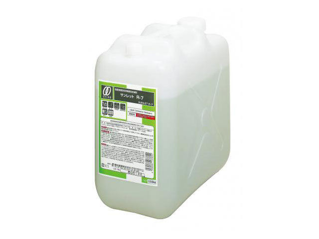 ●用途 アルミフィンやフィルターに付着する汚れの除去剤 ●特長 1. 洗浄力が強く、短時間に汚れを除去します。 2.アルミ材を腐食しません。 3.スプレー時のむせ返りが少なく作業が楽な洗浄剤です。 4.アルカリが弱く、わずかな希釈で排水可能です。 ● 洗浄機構 アルカリとキレート作用で汚れを溶解除去します。 ● 物性 外観:無色〜淡黄色の液体 pH:8.5〜9.8 比重:1.00〜1.10 ●使用方法 1.使用濃度10〜20%(10〜20kg/100L) 2.使用温度 室温 3.洗浄時間 特に制限ありません。 ●作業手順 1. 所定濃度・所定温度・所定時間で高圧洗浄機によるスプレー洗浄をします。 2.5〜10分放置します。 3. 清水で十分にスプレー水洗します。 4.最後にアルミフィンの保護のため、リンス剤セブンを均 一にスプレーして下さい。 ● 作業上の注意 1. 絶対に人に向けてスプレーしないで下さい。 2. スプレーの霧が周囲の構造物や植木等にかからないよう事前に養生をして下さい。 3. 洗浄液がかからないよう電機回路等にはビニール養生して下さい。 4.作業場周辺の換気は十分行って下さい。 5.洗浄廃液は養魚池・農業用水路・飲料水源へ直接放流しないで下さい。 6.河川や下水に放流する場合は、規制値以下に希釈してから行って下さい。 ● 取り扱い・保管上の注意 1.使用の前に必ず「安全データシート」をお読み下さい。 2. 取り扱い時にはゴム手袋・保護メガネ・保護マスクを着用し、直接皮膚に触れないよう注意して下さい。 3.誤って皮膚に触れたり、目や口に入った場合は清水で十分洗い流して下さい。なお痛みのある場合は医師の診断を受けて下さい。 4.空容器はきれいに洗って処分して下さい。 5.子供の手の届かない場所に保管て下さい。 8,778円 税込 送料別 カードOK レビュー1件 掃除用品クリーンクリン楽天市場店 ![]() | ||