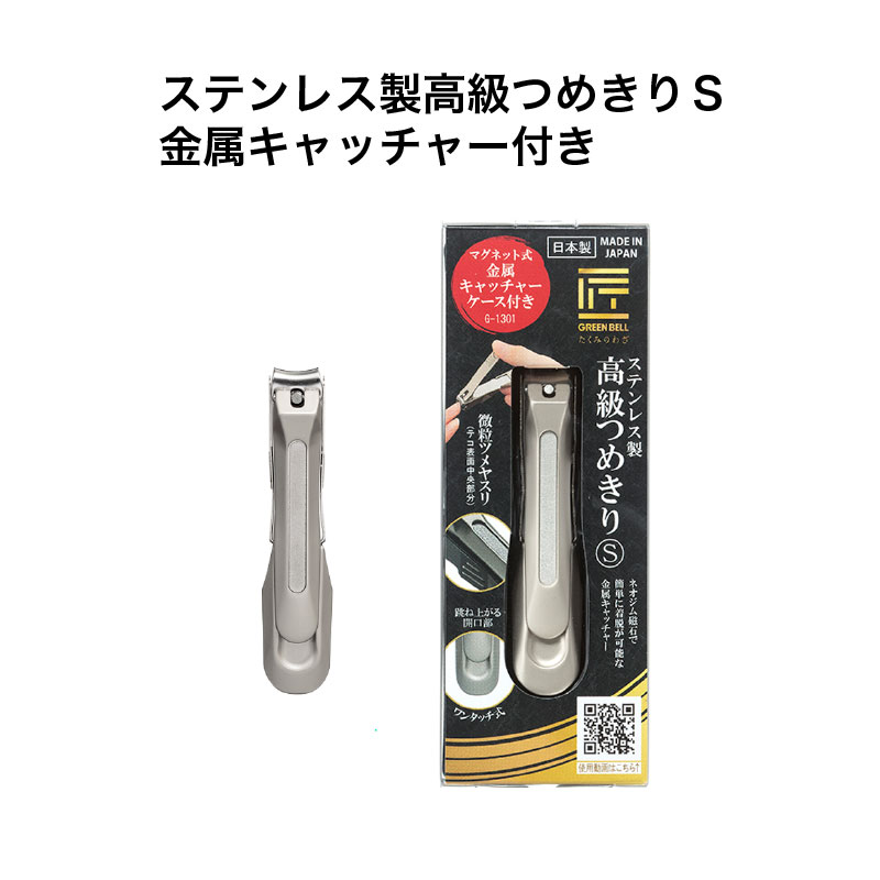 ・日本製 【素材】 本体/ステンレス刃物鋼 テコ/亜鉛合金・ニッケルメッキ仕上げ キャッチャー/ステンレス・ネオジム磁石 ヤスリ/ステンレス特殊加工(エッチング) サイズ 商品全長:77mm 商品重量:40g 詳細 ・切れ味だけではなくデザインや便利性もこだわり抜いた逸品です。 ・金属製のキャッチャーケースは磁石式で簡単に着脱可能なのでゴミ捨ても楽にできます。 ・小さいサイズはお子様や女性の方の爪におすすめです。 注意事項 ・刃は精密に仕上げています。爪以外の物を切らないでください。 ・刃はステンレス製ですが、水分や汚れなどが付着したまま放置しますとサビの原因となりますので、使用後は汚れなどをよく拭きとり、湿気の少ない通気性の良い所で清潔に保管してください。 ・周囲の環境に気をつけ(周りに人がいないことを確かめた上)ご使用ください。 ・お子様の手の届かない所に保管してください。また、足元や落下する恐れのある場所は避けて保管してください。 1,470円 税込 送料別 カードOK レビュー2件 HMK TOOLS ![]() | ||