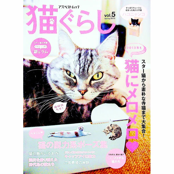 猫ぐらし vol.5(2013Spring) 単行本 の詳細 銀&ラムのスター猫を大特集するほか、箱入り子猫ハコニャンコ、脱力系ポーズ集、華麗に宙を舞う飛び猫、猫住職がいるお寺、悶絶級のおもしろ猫写真50連発、ご長寿猫の秘訣などを収録する。 カテゴリ: 中古本 ジャンル: 女性・生活・コンピュータ 猫の本 出版社: アスペクト レーベル: アスペクトムック 作者: カナ: ネコグラシ / サイズ: 単行本 ISBN: 4757222229 発売日: 2013/04/01 関連商品リンク : アスペクト アスペクトムック 165円 税込 送料別 カードOK ネットオフ楽天市場支店 ![]() | ||
