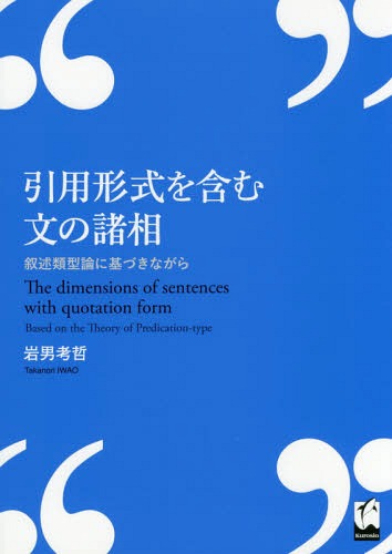 ご注文前に必ずご確認ください<商品説明>引用形式「という」の条件形「といえば、といったら、というと」が提題標識としても用いられることに注目。「主題‐解説」構造を文の基本モデルと捉えたうえで、これらを含む提題文と叙述の類型との関連性を明らかにする。<収録内容>第1章 序論第2章 叙述類型論からの提言—先行研究概観第3章 引用形式を用いた文の広がり—「といえば、といったら、というと」を中心に第4章 用法の背景第5章 引用形式を用いた提題文の叙述の類型第6章 研究の今後の展開に向けて補説 「ときたら」を用いた文の諸相—提題文を中心に<商品詳細>商品番号:NEOBK-2368189Iwao Ko Akira / Cho / Inyo Keishiki Wo Fukumu Bun No Shoso Jojutsu Ruikei Ron Ni Moto Zuメディア:本/雑誌重量:340g発売日:2019/05JAN:9784874247976引用形式を含む文の諸相 叙述類型論に基づ[本/雑誌] / 岩男考哲/著2019/05発売 3,740円 税込 送料別 カードOK ネオウィング 楽天市場店 ![]() | ||