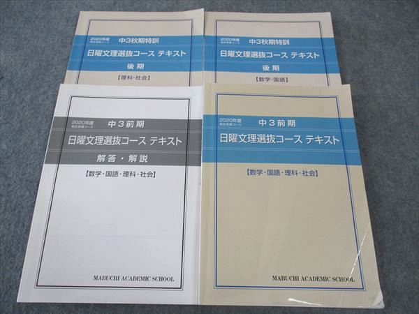 【30日間返品保証】商品説明に誤りがある場合は、無条件で弊社送料負担で商品到着後30日間返品を承ります。【最短翌日到着】正午12時まで(日曜日は午前9時まで)の注文は当日発送(土日祝も発送)。本州・九州・四国地方(北海道・沖縄県以外)は翌日お届け、北海道・沖縄県は翌々日にお届けします。【インボイス制度対応済み】当社ではインボイス制度に対応した適格請求書発行事業者番号(通称:T番号・登録番号)を印字した納品書(明細書)を商品に同梱してお送りしております。こちらをご利用いただくことで、税務申告時や確定申告時に消費税額控除を受けることが可能になります。また、適格請求書発行事業者番号の入った領収書・請求書をご注文履歴からダウンロードしていただくこともできます(宛名はご希望のものを入力していただけます)。ご満足のいく取引となるよう精一杯対応させていただきます。※下記に商品説明およびコンディション詳細、出荷予定・配送方法・お届けまでの期間について記載しています。ご確認の上ご購入ください。■商品名■馬渕教室 中3年 日曜文理選抜コース テキスト 2020年度 高校受験コース 国語/数学/理科/社会 前期/秋期 計2冊■出版社■馬渕教室■著者■■発行年■2020■教科■国語/数学/理科/社会■書き込み■すべて鉛筆による書き込みが2割程度あります。※書き込みの記載には多少の誤差や見落としがある場合もございます。予めご了承お願い致します。※テキストとプリントのセット商品の場合、書き込みの記載はテキストのみが対象となります。付属品のプリントは実際に使用されたものであり、書き込みがある場合もございます。■状態・その他■この商品はCランクです。コンディションランク表A:未使用に近い状態の商品B:傷や汚れが少なくきれいな状態の商品C:多少の傷や汚れがあるが、概ね良好な状態の商品(中古品として並の状態の商品)D:傷や汚れがやや目立つ状態の商品E:傷や汚れが目立つものの、使用には問題ない状態の商品F:傷、汚れが甚だしい商品、裁断済みの商品前期は解答解説がついています。秋期はテキスト内に解答解説がついています。■記名の有無■記名なし■担当講師■■検索用キーワード■国語/数学/理科/社会 【発送予定日について】正午12時まで(日曜日は午前9時まで)のご注文は当日に発送いたします。正午12時(日曜日は午前9時)以降のご注文は翌日に発送いたします(土曜日・日曜日・祝日も発送しています)。※土曜日・祝日も正午12時までのご注文は当日に発送いたします。※年末年始(12/31〜1/3)は除きます。(例)・月曜0時〜12時までのご注文:月曜日に発送・月曜12時〜24時までのご注文:火曜日に発送・土曜0時〜12時までのご注文:土曜日に発送・土曜12時〜24時のご注文:日曜日に発送・日曜0時〜9時までのご注文:日曜日に発送・日曜9時〜24時のご注文:月曜日に発送【送付方法について】ネコポス、宅配便またはレターパックでの発送となります。北海道・沖縄県・離島以外は、発送翌日に到着します。北海道・沖縄県・離島は、発送後2日での到着となります。【その他の注意事項】1.テキストの解答解説に関して解答(解説)付きのテキストについてはできるだけ商品説明にその旨を記載するようにしておりますが、場合により一部の問題の解答・解説しかないこともございます。商品説明の解答(解説)の有無は参考程度としてください(「解答(解説)付き」の記載のないテキストは基本的に解答のないテキストです。ただし、解答解説集が写っている場合など画像で解答(解説)があることを判断できる場合は商品説明に記載しないこともございます。)。2.一般に販売されている書籍の解答解説に関して一般に販売されている書籍については「解答なし」等が特記されていない限り、解答(解説)が付いております。ただし、別冊解答書の場合は「解答なし」ではなく「別冊なし」等の記載で解答が付いていないことを表すことがあります。3.付属品などの揃い具合に関して付属品のあるものは下記の当店基準に則り商品説明に記載しております。・全問(全問題分)あり:(ノートやプリントが)全問題分有ります・全講分あり:(ノートやプリントが)全講義分あります(全問題分とは限りません。講師により特定の問題しか扱わなかったり、問題を飛ばしたりすることもありますので、その可能性がある場合は全講分と記載しています。)・ほぼ全講義分あり:(ノートやプリントが)全講義分の9割程度以上あります・だいたい全講義分あり:(ノートやプリントが)8割程度以上あります・○割程度あり:(ノートやプリントが)○割程度あります・講師による解説プリント:講師が講義の中で配布したプリントです。補助プリントや追加の問題プリントも含み、必ずしも問題の解答・解説が掲載されているとは限りません。※上記の付属品の揃い具合はできるだけチェックはしておりますが、多少の誤差・抜けがあることもございます。ご了解の程お願い申し上げます。4.担当講師に