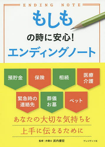 ※商品画像はイメージや仮デザインが含まれている場合があります。帯の有無など実際と異なる場合があります。著者武内優宏(監修)出版社プレジデント社発売日2015年06月ISBN9784833421331ページ数63Pキーワードもしものときにあんしんえんでいんぐのーと モシモノトキニアンシンエンデイングノート たけうち ゆうこう タケウチ ユウコウ9784833421331内容紹介すぐにはじめられ、いまの自分が整理できる!預貯金、保険、相続、医療介護、緊急時の連絡先、葬儀お墓、ペット—あなたの大切な気持ちを上手に伝えるために。※本データはこの商品が発売された時点の情報です。目次第1章 自分のこと(自分の基本情報/健康管理について ほか)/第2章 お金・資産のこと(預貯金について/口座引き落としについて ほか)/第3章 家族・親族・友人(家族の基本情報/家系図 ほか)/第4章 自分の「もしもの時」(看護・介護について/告知・終末医療について ほか)/第5章 自分の大切なもの(好きなもの・大切なもの/自分の年表 ほか) 1,018円 税込 送料込 カードOK レビュー1件 bookfan 2号店 楽天市場店 ![]() | ||