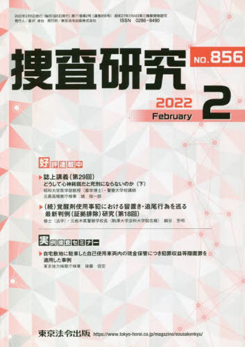 2946. 捜査研究 856[本/雑誌] / 東京法令出版 ご注文前に必ずご確認ください<商品説明><商品詳細>商品番号:NEOBK-2723851Tokyohoreishuppan / Sosa Kenkyu 856メディア:本/雑誌重量:450g発売日:2022/02JAN:9784809099410捜査研究 856[本/雑誌] / 東京法令出版2022/02発売 990円 税込 送料別 カードOK ネオウィング 楽天市場店 ![]() | ||