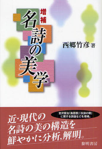 2142. 名詩の美学 西郷竹彦/著本詳しい納期他、ご注文時はご利用案内・返品のページをご確認ください出版社名黎明書房出版年月2011年08月サイズ386P 20cmISBNコード9784654076253文芸 詩・詩集 詩学名詩の美学メイシ ノ ビガク※ページ内の情報は告知なく変更になることがあります。あらかじめご了承ください登録日2013/04/06 4,400円 税込 送料別 カードOK ぐるぐる王国FS 楽天市場店 ![]() | ||