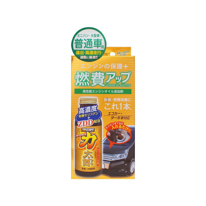 <プロスタッフ ハイパワー力太郎 普通車用 100ml エンジンオイル添加剤 D-68> エンジンを保護し、さらに燃費アップさせる普通車専用のエンジンオイル添加剤です。 高濃度有機モリブデン(MoDTC)を贅沢に配合。 エンジン内稼動部を強力コーティングし、ピストン・シリンダーの摩擦を低減。 アクセルワークが軽くなり加速性がアップし、燃費を向上させます。 またオイルの極圧性・耐摩耗性・潤滑性を安定・持続させるZDD配合(摩擦調整剤)。 オイル劣化を抑制し、エンジンへのダメージを軽減しエンジンを保護します。 さらにシンセティックオイルにより、添加後有効成分をエンジンオイルに素早くなじませ、効果をすぐに発揮します。 エンジン音も静かになり心地いい走りを実現し、普通車の走りを改善する高性能添加剤です。 エコカーやターボ車にも対応。 添加しやすい、じょうご付き。 【商品仕様】 品番 D-68 品名 ハイパワー力太郎 普通車用 内容量 100ml 付属品 じょうご×1 製品サイズ 高さ:194mm 幅:88mm 奥行:58mm 製品重量 275g 【危険物表示】 危険物適用:危険物 危[大分類]:第四類 危[小分類]:第三石油類 危[内容量]:100ml 危[危険物等級]:III 危[水溶性]:非水溶性 商品写真は、 お使いのモニター設定、お部屋の照明等により実際の商品と色味が異なる場合がございます。 1,350円 税込 送料別 カードOK スーパーメガホームセンター ejoy ![]() | ||