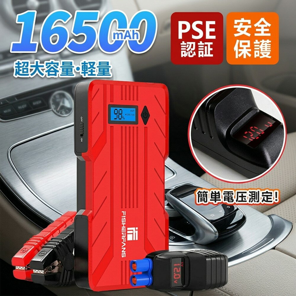 メーカー希望小売価格はメーカーサイトに基づいて掲載しています ★★12V車用ジャンプスターター ★安全、安心 7.2L(7200cc)以下のガソリン車、5.5L(5500cc)以下のディーゼル車対応。最大瞬間電流は1000Aでバッテリー上がりをわずか数十秒で瞬時的にエンジンを起動します。 一回のフル充電で約30回(テスト値)のジャンプスタートが可能です。PSE認証取得。 ★QDSP技術&最新版スマートブースターケーブル QDSP技術が採用され、ジャンプスタート能力は2倍に上がりました。QDSP技術向きの専用QDSPスマートジャンパーケーブルを付属し、八重保護を実現しました。 (ショート保護、逆接続保護、定電圧保護、高電圧保護、逆電流保護、加熱保護、過時保護)ジャンパーケーブルに内蔵された電圧計はバッテリーの状態を確認することができ、 使用状況を簡単に把握できます。 ★Type-C 出入力&大容量 大容量の12800mAhで従来のジャンプスターターより大幅にバッテリー容量がアップしました。ジャンプスターター本体はUSB Type-C にて充電。 出力用USB Type-Aが二口(5V/9V/12V、5V/2.1A)、Type-C(5V/3A)ポートも搭載しており最大3台のデバイスを同時に充電できます。小型で、持ち運びもとても便利です。 ★超軽量・超薄型 本体重量318g、厚みはわずか2.5cmです。シンプルでどんな場所に置いても溶け込むデザインです。 ★どんな季節でも使用可能 夏場の高温化で連続使用した場合や温度が急激に低くなる冬季でエンジンが冷え切った場合でも一発でエンジンがかかります! 注意 ※リチウムイオン電池は真夏の車内など高温になる場所に放置するのは危険ですので、絶対にしないようにしてください。 ※少し弱っている車載バッテリーの電圧を補助するものであり、完全に劣化したバッテリーに対してジャンプスタート機能は使えません。 ご承知くださいますようお願い申し上げます。 【パッケージ内容]】 日本語取扱説明書×1 ジャンプスターター×1 ブースターケーブル×1 充電用USB-TYPECケーブル×1 (Type-Cケーブル長さ:40cm) 【商品仕様】 ブランド名: FISHERFANS メーカー型番: FF1 代表カラー: レッド 発売年月日: 2021/06/23 本体奥行: 25mm 本体横幅: 84mm 本体高さ: 145mm 本体重量: 318g カラー: レッド 対応電圧(車・バイク): 12V 起動電流: 400A 適応使用環境温度: -40℃~80℃ LEDライト点灯持続時間: 52時間https://image.rakuten.co.jp/starlighting/cabinet/11250877/11250880/imgrc0111160502.jpg 7,580円 税込 送料込 カードOK 星明ショップ ![]() | ||