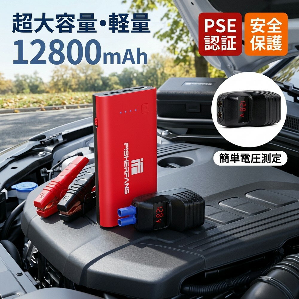 メーカー希望小売価格はメーカーサイトに基づいて掲載しています ★★12V車用ジャンプスターター ★安全、安心 7.2L(7200cc)以下のガソリン車、5.5L(5500cc)以下のディーゼル車対応。最大瞬間電流は1000Aでバッテリー上がりをわずか数十秒で瞬時的にエンジンを起動します。 一回のフル充電で約30回(テスト値)のジャンプスタートが可能です。PSE認証取得。 ★QDSP技術&最新版スマートブースターケーブル QDSP技術が採用され、ジャンプスタート能力は2倍に上がりました。QDSP技術向きの専用QDSPスマートジャンパーケーブルを付属し、八重保護を実現しました。 (ショート保護、逆接続保護、定電圧保護、高電圧保護、逆電流保護、加熱保護、過時保護)ジャンパーケーブルに内蔵された電圧計はバッテリーの状態を確認することができ、 使用状況を簡単に把握できます。 ★Type-C 出入力&大容量 大容量の12800mAhで従来のジャンプスターターより大幅にバッテリー容量がアップしました。ジャンプスターター本体はUSB Type-C にて充電。 出力用USB Type-Aが二口(5V/9V/12V、5V/2.1A)、Type-C(5V/3A)ポートも搭載しており最大3台のデバイスを同時に充電できます。小型で、持ち運びもとても便利です。 ★超軽量・超薄型 本体重量318g、厚みはわずか2.5cmです。シンプルでどんな場所に置いても溶け込むデザインです。 ★どんな季節でも使用可能 夏場の高温化で連続使用した場合や温度が急激に低くなる冬季でエンジンが冷え切った場合でも一発でエンジンがかかります! 注意 ※リチウムイオン電池は真夏の車内など高温になる場所に放置するのは危険ですので、絶対にしないようにしてください。 ※少し弱っている車載バッテリーの電圧を補助するものであり、完全に劣化したバッテリーに対してジャンプスタート機能は使えません。 ご承知くださいますようお願い申し上げます。 【パッケージ内容]】 日本語取扱説明書×1 ジャンプスターター×1 ブースターケーブル×1 充電用USB-TYPECケーブル×1 (Type-Cケーブル長さ:40cm) 【商品仕様】 ブランド名: FISHERFANS メーカー型番: FF1 代表カラー: レッド 発売年月日: 2021/06/23 本体奥行: 25mm 本体横幅: 84mm 本体高さ: 145mm 本体重量: 318g カラー: レッド 対応電圧(車・バイク): 12V 起動電流: 400A 適応使用環境温度: -40℃~80℃ LEDライト点灯持続時間: 52時間https://image.rakuten.co.jp/starlighting/cabinet/11250877/11250880/imgrc0111160502.jpg 7,580円 税込 送料込 カードOK 星明ショップ ![]() | ||