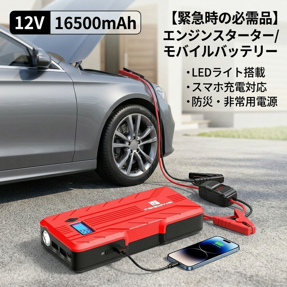 メーカー希望小売価格はメーカーサイトに基づいて掲載しています 12V車用ジャンプスターター ★安全、安心 8L(8000cc)以下のガソリン車、6.0L(6000cc)以下のディーゼル車対応、1200Ampピーク電流でバッテリー上がりをわずか数十秒で何回でも瞬時に解決できます。バイク、トラクター、小型トラック、スノーモービルなどにも対応!LEDライト(懐中電灯)機能があるので、暗い場所でのエンジンスタートも可能に。高輝度LEDによる、3モード(点灯/点滅/SOS信号)の切り替えが可能。万が一の災害や緊急時にも安心です。 PSE認証取得済み、ご安心お使いいただけます。 ★急速USB充電ポート付き 2つの急速USB充電ポート(5V/2.1A)を装備しており、スマートフォン、タブレットやデジタルカメラなど幅広い機器への充電が可能、最大2台デバイス同時に充電でき、充電にかかる時間は大幅に短縮できます。スマホなどの電源切れの心配はなくなります。一台多役、女性でも簡単に使え、プレゼントとしても最適! ★液晶ディスプレイ搭載 大きく見やすい大画面液晶表示で、詳細なバッテリー残量(%)、出力電圧電流(V/A)を確認できます。後どれくらい使えるのか、後どれくらいで充電しなければいけないのかを簡単に把握できます。夜間の視認性も抜群です。 ★滑り止め素材 モバイル端末の端末が大きくなる傾向にありつつ、本製品もその流行りに乗り、裏のみならず表も滑り止め素材を使用しています。 ★超軽量・超薄型 わずか14mmの厚みに洗練されています。下敷きのような置くタイプのためインテリアの邪魔になりにくいです。シンプルだからこそどんな場所においても溶け込みやすいです。 ★360°全方向放熱構造 360°全方向への放熱構造により、発熱を抑えるだけでなく、高温制御・過熱防止を実現しました。 ★簡単便利・男女兼用 ジャンプスタートピークは1200Aで8L(8000cc)以下のガソリン車、6.0L(6000cc)以下のディーゼル車対応に対応します。ケーブルをつなぐだけで一人でも簡単にエンジンをスタートできます。ロードサービスを呼ぶより時間と金を大幅に節約します。1度のフル充電で約20回(離れた回路、テスト値)のジャンプスタートが可能です。万が一に備えて持っておくことは決して無駄ではありません。 ブランド BEATIT 型番 B7 本体重量 400g 本体寸法 175*83*35mm パッケージ内容 日本語取扱説明書×1、 FISHERFANSジャンプスターター×1、 ジャンプスターターケーブル×1、 充電用USB-TYPECケーブル×1、 収納ケース×1 出力電圧 12V ピーク電流 1200A(30S) 起動電流 600A 適応使用環境温度 -20℃~60℃ 保障期間 24ヶ月 検索用キーワード: ジャンプスターター 日本製 ジャンプスターター バッテリー ジャンプスターター 12v ジャンプスターター モバイルバッテリー ジャンプスタータ 大容量 ジャンプスターター バイク バッテリーあがり エンジンジャンプスターター 車用ジャンプスターター バッテリー スターター モニターの発色具合によって実際の物と色が異なることあります。 8,980円 税込 送料込 カードOK 星明ショップ ![]() | ||