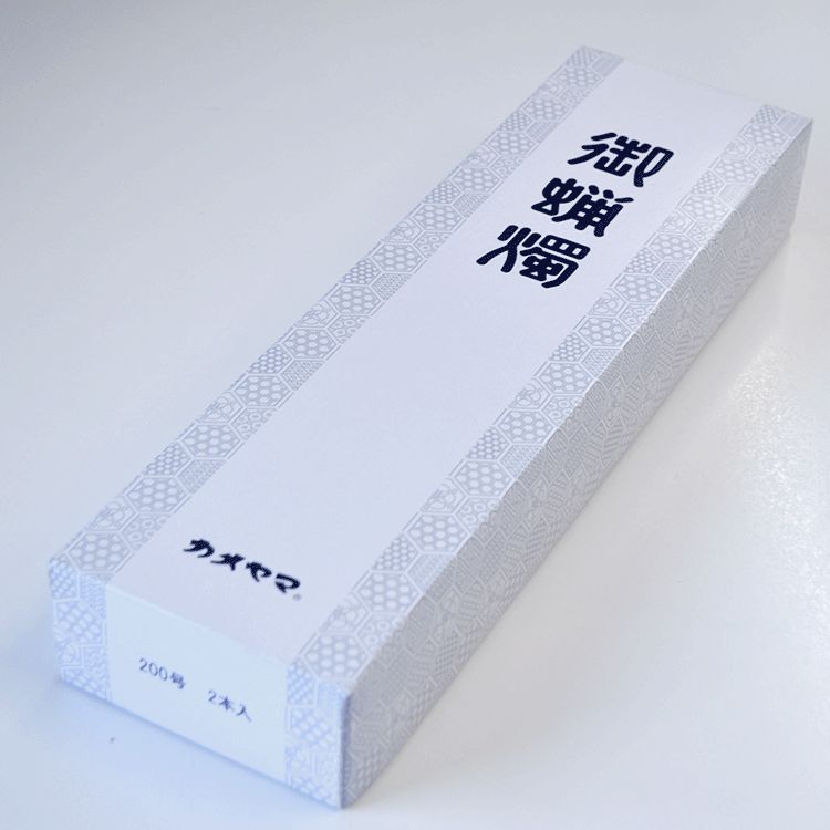 ローソクを献じて無心に祈ることで安らぎが生まれ、心和ませます。品質にこだわり続けるカメヤマローソクはもっともリピーターの多い商品です。 商品名 : 200号ローソク 白(2本入り) 商品サイズ : 径54mm×高さ400mm×2本 燃焼時間 : 約83時間 パッケージサイズ : 約横120mm×縦417mm×厚み62mm 仏具の基本は「花立て」「香炉」「燭台」(三具足と言います)。 これは仏様の好物が華・香・灯だからです。 中でも灯明は、闇を照らす智慧の光とされ、 重要な供養のひとつとされています。 朝夕のおつとめに欠かさず明かりを灯していただけたらと思います。 ローソクを献じて無心に祈ることで 安らぎが生まれ、その灯りが心和ませることはいつの世も変わりません。 献じる心をともなってローソクの灯りを灯すことで、 人は安らぎを覚えるのです。 伝統とともに培われた高度な技術力と信頼の品質を誇るカメヤマブランド。 一般にローソクの品質は、 『流れず、曲がらず、くすぶらず』の『三ず』で決まると言われています。 カメヤマの考える「高品質なローソクつくり」は、原料の段階から始まっています。 原料メーカーと試行錯誤を重ね創り上げた高品質な原料を使用し、 ススや油煙の発生を限りなく抑えることで、今のトップシェアを勝ち取ったのです。 一度使うと、そのよさを実感し、リピーターがとても多いことでも 品質の高さを証明しています。 (サイズ:径54mm×高さ400mm 燃焼時間約83時間) カメヤマローソク『100号ローソク』白(2本入り)もあります。 3,300円 税込 送料別 カードOK レビュー3件 お香・数珠・仏壇のe-namu庵心堂 ![]() | ||