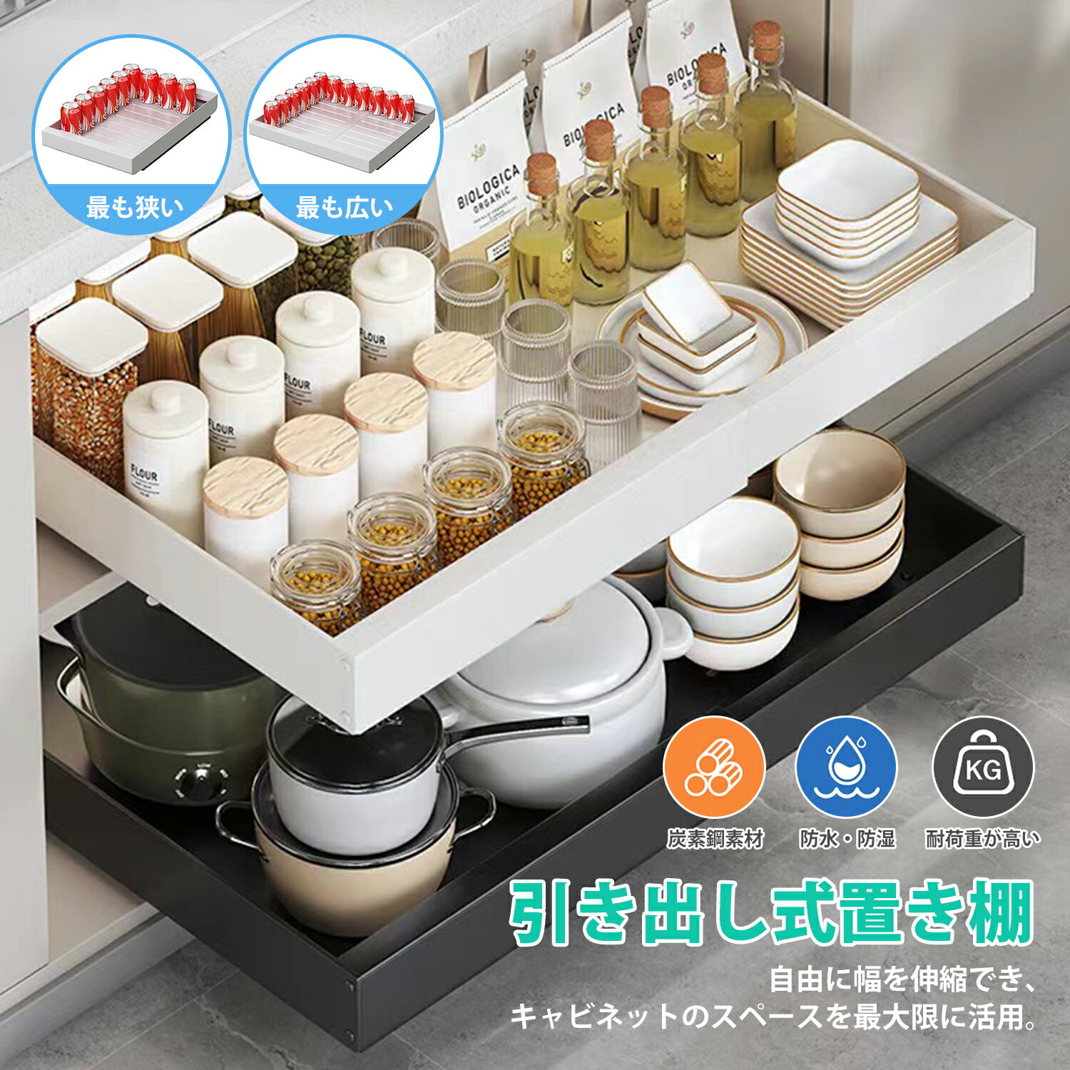 商品名引き出し式収納ラック サイズ約長さ33cm~53cm高さ7.5cm幅42.5cm 主な素材カーボンスチール カラーホワイト、ブラック 生産国中国 商品紹介 引き出し式デザインで、奥行きのある狭いキャビネットでもラクに取り出せ、キッチンスペースを最大限に活用できます。 伸縮できる大容量収納、幅33cm〜53cm調整可能、高さも7.5cmまで、異なるサイズのキャビネットや洗面台下にもぴったりフィット。 穴を回す必要がなく、強力両面テープが付いており、貼り付けるだけで簡単に取り付... 6,180円 税込 送料込 カードOK レビュー4件 Mabida ![]() | ||