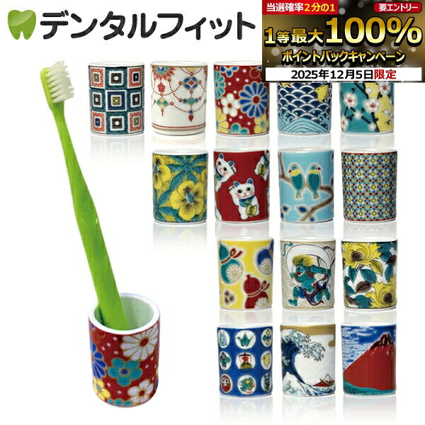 縁起のいい絵柄を集めた吉祥文様の歯ブラシスタンドです。 お祝い事の贈り物やお返し、プレゼントとしてもお使いいただけるデザイン性にも優れた歯ブラシ立てです。 口径は広く、傾斜によって衛生的に2本の歯ブラシを立てられる設計されています。 ※歯ブラシは一般的なサイズとする。 「九谷五彩」と呼ばれる、緑・黄・紫・紺青・赤の色絵で絵付けされているので、鮮やかで温かみがあります。 全15種類からお気に入りの歯ブラシ立てを見つけてください。 青郊窯の作品です。 【種類】 ・石畳(いしだたみ) ・瓔珞文(ようらくもん) ・梅菊(ばいきく) ・葵(あおい) ・千鳥(ちどり) ・梅(うめ) ・招き猫(まねきねこ) ・小鳥(ことり) ・小紋手(こもんて) ・六瓢(むびょう) ・風神雷神(ふうじんらいじん) ・色絵牡丹(いろえぼたん) ・丸紋宝紋(まるもんたからもん) ・波(なみ) ・赤富士(あかふじ) 歯ブラシだけではなく、デスクでのペン立てや判子立としても活躍します。 美しい絵柄は見ているだけで楽しくなれます♪ 伝統工芸の九谷焼を身近に生活に取り入れてみませんか! サイズ 高 さ:4.5cm 直 径:3.5cm 上口径:3.0cm 底口径:1.7cm 【九谷焼とは】 九谷焼の歴史は、江戸時代初期の1655(明暦元)年ごろからとなります。 特徴は、「呉須(ごす)」とよばれる黒色で線描き(骨描き)し、 「五彩」とよばれる、赤・黄・緑・紫・紺青の5色での絵の具を厚く盛り上げて塗る彩法です。 多彩な作風で力強さと温かみのある陶器です。 ジャパン・クタニとして海外からの評価も高く、外国の方へのお土産やプレゼントにも最適です。 検索: 青郊窯 九谷焼 九谷 歯ブラシスタンド 歯ブラシ立て 歯間ブラシスタンド 歯間ブラシ立て フロススタンド フロス立て ペンスタンド ペン立て プレゼント 贈り物 お祝い お祝い返し お返し エアープランツスタンド 【ご注意(免責)事項】当店では、サイト上に最新の商品情報を掲載するよう努めておりますが、メーカーの都合等により、商品規格や仕様(容量・成分・パッケージ・原産国など)が予告なく変更される場合がございます。このため、実際にお届けする商品と商品ページ上の情報表記が異なる場合がございますので、ご使用前には必ずお届けした商品の商品ラベルや注意書きをご確認ください。また、商品情報についてページ表記以外の詳細が必要な場合は、メーカー等にお問合せください。 1,360円 税込 送料別 カードOK レビュー5件 歯科医院専売品のデンタルフィット ![]() | ||