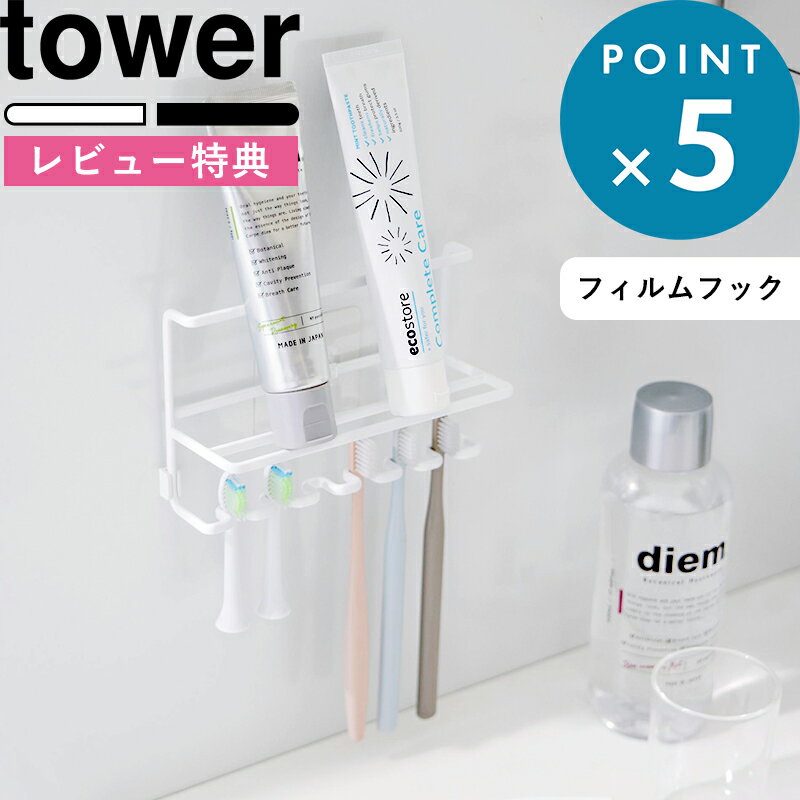 ■Detail -商品説明- 歯ブラシと歯磨き粉を一緒に収納できる2段のホルダー。 上段には日焼け止めや洗顔フォームなどチューブ状のものを。下段にはシェーバーやヘアゴムなどをそれぞれ収納することができます。 お好みの場所に貼ったフィルムフックに掛けるだけなので設置も簡単。浮かせることで水切れもよく衛生的にお使いいただけます。 ■Service -サービス- この商品はラッピング可能です。(+110円)ご希望の方は、[ラッピングする]を選択のうえ、ご注文ください。 ■Delivery -配送に関して- ●北海道・沖縄・離島は追加送料がかかります。注文確認後、送料修正しご案内いたします。 ≫送料・配送についての詳細はこちらから ■attention -注意事項- ●お客様都合の返品・交換はお受けしておりません。→詳しくはこちら JAN:4903208103244tower フィルムフック歯ブラシ&チューブホルダー タワー 立て掛ける収納と引っ掛け収納がひとつになった2段のホルダー。 収納スペースが2段に分かれているので省スペースでもたっぷり収納できます。 普通の歯ブラシに電動歯ブラシの替えブラシ、さらにはお子様用の小さい歯ブラシまで幅広く収納可能です。ご家族それぞれのブラシを種類を気にせずまとめて収納できます。 貼り付けたフィルムフックに掛けるだけでお好みの場所に簡単設置。浮かせることで水切れもよくなり快適にお使いいただけます。 上段は歯磨き粉などを立て掛けて置けるチューブホルダー。 歯磨き粉だけでなく洗顔フォームやクレンジングオイルなど洗面周りで使うアイテムや化粧品類の収納にも。設置位置を調節することで長めのチューブも収納可能です。 他にもうがい用のコップやマウスピースの乾燥場所としても活用できます。 下段は歯ブラシ等を引っ掛け収納できる歯ブラシホルダー。 電動歯ブラシの替えブラシやお子様用の小さな歯ブラシも収納可能で、最大6本まで収納できます。 1本ずつ間を空けて収納することで歯ブラシ同士が触れず衛生的に。 歯ブラシ以外にもシェーバーやヘアゴムなど小物類の引っ掛け収納にも役立ちます。 (1)コップ (2)歯磨き粉 (3)マウスピース (4)化粧品類 (5)電動歯ブラシの替えブラシ (6)歯ブラシ (7)シェーバー (8)ヘアゴム ※サイズや形状によっては収納できない場合があります。 設置は壁面に貼り付けたフィルムフックに掛けるだけ。光沢のある平らな面のお好みの位置に取り付けられます。 浮かせることでしっかりと水が切れて衛生的に。接地面を減らせるのでお掃除の手間も省けます。 背面にはホルダーが設置面に直接当たるのを防いでくれるクッション付き。 〇フィルムフック電動歯ブラシ&歯磨き用品収納セット タワー 〇フィルムフック差し込み式歯ブラシ&チューブホルダー タワー W4 2個組 / W9 / W18 〇フィルムフック1人用歯ブラシホルダー&マグネットタンブラー タワー ⇒ 商品カテゴリー>歯ブラシスタンド ⇒ 洗面台のお掃除に「シリコーンスポンジ」 ⇒ 洗面周りで役立つtowerのフィルムフック収納 [ NEW ] 大人気のtowerなど山崎実業の最新アイテムはこちら ●商品の詳細● 品 名 tower フィルムフック歯ブラシ&チューブホルダー タワー サイズ 本体:約 幅16 × 奥行き6.4 × 高さ10.8cm(フィルムフック・クッション含まず) (チューブホルダー部:約 幅15.3 × 奥行き3.7 × 高さ5.6cm) フィルムフック接着面:約 幅6 × 高さ6cm 耐荷重 歯ブラシホルダー部1つあたり:約 100g チューブホルダー部:約 500g(静止荷重) 材 質 本体:スチール(ユニクロメッキ+粉体塗装) クッション:エラストマー フィルムフック:ポリカーボネート、PET、ポリウレタン 重 量 約 150g 耐冷熱 フィルムフック:約 -40 ~ 60℃ カラー ホワイト / ブラック 入 数 1個 備 考 <取り付け可能な壁面> 光沢のある平らな油染みしない面で、フィルムフックの接着面よりも大きい面(タイル・プラスチック・ステンレス・金属塗装面・人工大理石) ■注意点 ※フィルムフックは必ず光沢のある平らな面に貼り付けてください。平らな面であっても設置面の表面加工・材質・状態・環境などによっては、取り付けできない場合があります。 ※設置後、フィルムフックがしっかり接着されているかご確認の上ご使用ください。 ※耐荷重制限は必ずお守りください。また、耐荷重制限内でも大きな衝撃により製品が落下し、ケガや破損の原因となることがありますのでご注意ください。 ※ガラスや陶器等の割れやすい材質のコップは収納しないでください。 ※フィルムフックに熱湯(60℃以上)をかけたり、お湯や水につけたまま放置しないでください。 ※直接水がかかる場所ではフィルムフックの粘着力が弱くなる場合があります。 ※歯ブラシ・チューブ等のサイズや形状によっては収納できない場合があります。 ※直射日光の当たる場所や火の近く、高温になる場所では使用しないでください。 ※商品の色は、画像と実物とでは多少異なる場合がございます。色・イメージが違う等の理由による返品は一切お受けできません。予めご了承下