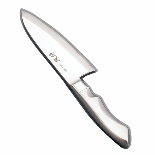 切れ味、使い易さ、プロの理想を追求 刀身: モリブデン・バナジウム鋼 ハンドル: 18-8ステンレス鋼 ○本刃付け 砥石による本格的な刃付けを施し、鋭い切れ味を 長く持続させます。 ○本研刃造り プロの技術者により、本刃付けにする前に砥ぎなおし を容易にするため、水砥の荒砥・中砥を使用し、刃基 を研ぎだしてあります。 ○サブゼロ処理 1050℃で焼き入れ後に、-73℃以下に冷却する特別 な処理により高い硬度と靱性を与え、切れ味を一段と 高めてあります。 ○一体構造 刀身とハンドルはすき間のない一体構造で非常に 衛生的です。 ○モナカハンドル ハンドル部を空洞にし、軽くていつまでも美観を保つ 「ステンレスモナカ構造」を採用。また、18-8ステン レス功を使用し水・薬品等の高圧・高温殺菌洗浄を可 能にした衛生的なハンドルです。 ※次亜塩素酸・塩素等での殺菌はしないでください。 19,800円 税込 送料込 カードOK 厨房・Byonho ![]() | ||