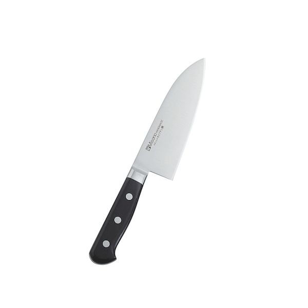 ●「切れ味の鋭さと特長」本研刃造りプロの技術者により、本刃付けする前に研ぎ直しを容易にするため、水砥の荒砥・中砥を使用し、刃基を研ぎだしてあります。本刃付け砥石による本格的な刃付けを施し、鋭い切れ味を長く持続させます。サブゼロ処理1050℃で焼き入れ後に、ー73℃以下に冷却する特別な処理により高い硬度と靭性を与え、切れ味を一段と高めてあります。抗菌効果プラスチック製ハンドルに抗菌剤が配合してあり、抗菌効果抜群です。※ガラスキ・柳刃30cm・蛸引・小出刃(片刃)・小出刃(両刃)はブルーとブラウンのみになります。●「多彩なカラーバリエーション」ハンドルのカラーは6色あり、肉類、魚貝類、野菜、果実、パン類、加工済食品など食品別に利用出来るので衛生管理が出来ます。●サイズ 刃渡×全長×背厚 重量:180×313×4.0mm210g●材質:刀身:モリブデンバナジウム鋼/ハンドル:ノバロンAGZ330(銀系無機抗菌剤)入りポリプロピレン樹脂(耐熱温度110℃)●生産地:燕三条 10,817円 税込 送料別 カードOK ダイニングマート ![]() | ||