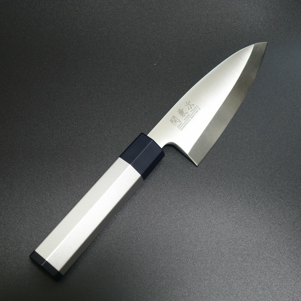 関兼次 出刃包丁 120mm アルミ和包丁 モリブデン・バナジウム鋼 ステンレス 切れ味の鋭さと耐久性を兼ね備えたステンレス製です。 【商品説明】新開発のアルミと樹脂で出来たハンドルにより、従来の和包丁の欠点である錆びやすい・腐りやすい・抜けやすい・不衛生といった不具合を解決しました。和包丁の直線的な形を継承しつつ、ハンドルは「アルミ素材」と「独自比率の七角形ハンドルデザイン」により、しっくり手に馴染み、繊細な作業など思い通りの切り口を刃先に伝える事ができます。モダンでシャープなイメージに仕上がっています。品名:アルミ和包丁 出刃包丁材質:モリブデン・バナジウム鋼刃渡り:120mm刃付け:片刃(右利き)ハンドル:アルミニウム&耐熱グレードABS樹脂柄お手入れ簡単:ステンレス素材の和包丁初めて和包丁を手にする方でもお手入れが簡単にできる、錆びに強く鋭い切れ味のステンレス材料「大同特殊鋼製モリブデン・バナジウム・ステンレス鋼」を採用した和包丁です。家庭で頻度の少ない和包丁はステンレス包丁ならではの持ち味が最大限に活かされます。清潔:アルミハンドルと樹脂鍔で錆びにくい、和包丁でも煮沸消毒が可能に!新開発のアルミと樹脂とでできたハンドルにより、従来の和包丁の欠点である、錆びやすい・腐りやすい・抜けやすい・不衛生といった不具合を解決しました。それによって、従来の和包丁ではできなかった、煮沸消毒も可能になりました。ハンドル材質:アルミ素材で持ちやすい七角形和包丁の直線的な形を継承しつつ、ハンドルは「アルミ素材」と「独自比率の七角形ハンドルデザイン」により、しっくり手に馴染み、繊細な作業など思い通りの切り口を刃先に伝える事ができます。■ご注意・さびにくいステンレス製ですが、包丁の使用後は汚れを落として、水分をしっかり拭き取ってください。水分や汚れを残したままにすると錆びの原因になります。・食器洗浄機や食器乾燥機には使用しないでください。・刃こぼれや刃欠け、刃折れの原因になるので、冷凍食品/とうもろこし/かぼちゃ/乾燥した餅/骨や殻などの硬い食材には使用しないでください。 5 7,480円 税込 送料込 カードOK 啓仁刃物 楽天市場店 ![]() | ||