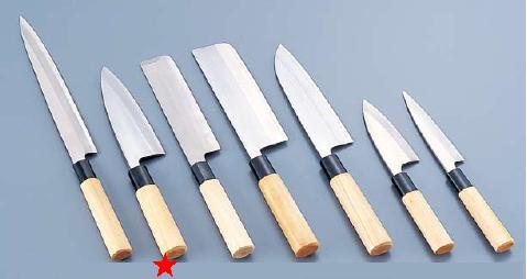 ●従来の和庖丁と同じ製法で素材を錆に強い特殊鋼に替えた新しい感覚の和庖丁です。●片刃【外寸 (mm)】 420【重量】 480g【材質】 銀三鋼(カーボン入り13クローム鋼(日立銀紙3号)・13クローム鋼) 一位水牛柄 背:7.5※ ご注文をいただきましたのち、メーカーの在庫を確保・取り寄せする商品となります。近年の社会情勢により、メーカー側のやむを得ない事情で生産待ち・生産終了となっているケースがございます。ご不便おかけしますことお詫びします。ご注文前に在庫・納期状況または関連商品についてお問い合わせのほどご検討をよろしくお願いします。 129,800円 税込 送料別 カードOK 厨房の達人 ![]() | ||