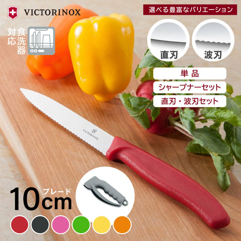 ブランド名 VICTORINOX カテゴリー キッチンナイフ 原産国 スイス サイズ ナイフ: ブレード 11 cm、全長 22.3 cm ピーラー: 全長 17.5cm 重量 ナイフ 29 g / ピーラー 21 g カラー/品番 レッド 6.7831-X7 ブラック 6.7833-X14 グリーン 6.7836.L114-X4 ピンク 6.7836.L115-X3 イエロー 6.7836.L118-X3 オレンジ 6.7836.L119-X7 材質 ブレード: ステンレススチール ハンドル: ポリプロピレン 特徴 食洗機利用可 ... 2,750円 税込 送料別 カードOK レビュー18件 ビクトリノックス公式 楽天市場店 ![]() | ||