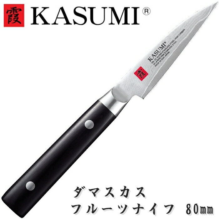霞 KASUMI 包丁フルーツナイフ ダマスカス 80mm VG10 スミカマ SUMIKAMA 霞 ダマスカス フルーツナイフはVG10という高品質なステンレス鋼を使用しており、耐久性と切れ味の持続性に優れています。 2002年、ドイツで行われたAmbiente Messeにて「DESIGN PLUS」を受賞し、海外で高い評価を受けている包丁です。霞KASUMI包丁の刃芯は超硬質合金鋼V金10号を使用し、その両側には32枚 のステンレス層を重ね合わせて本鍛造されることによって霞模様が打ち出されております。切れ味は他の包丁に類を見ない持続性を持ち、末永くご使用頂けます。頑丈な黒積層強化木柄の付いており、熟練した職人によって一丁づつ丁寧に仕上げられます。野菜、果物等のカットや飾り切り、皮むきに使用します。※刃部の模様は一本一本手作業で仕上げている為、一本一本異なり、商品画像とも模様が若干異なります。【霞 ダマスカス フルーツナイフ】■全長:190mm■刃渡り:80mm■刃芯:VG10■32層部:ステンレス■柄:黒積層強化木柄■重量:70g■刃付け:両刃(右利き・左利き)*ご注意・さびにくい材質ですが、包丁の使用後は汚れを落として、水分をしっかり拭き取ってください。水分や汚れを残したままにすると錆びの原因になります。・食器洗浄機や食器乾燥機には使用しないでください。・刃こぼれや刃欠け、刃折れの原因になるので、冷凍食品/とうもろこし/かぼちゃ/乾燥した餅/骨や殻などの硬い食材には使用しないでください。 5 12,100円 税込 送料込 カードOK 啓仁刃物 楽天市場店 ![]() | ||