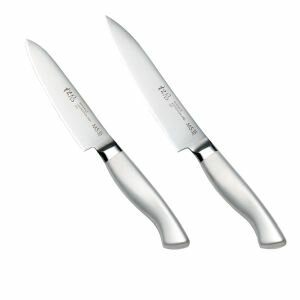 商品仕様 ●材質:心材 モリブデンバナジウム鋼、側材13クロームステンレス鋼 口金:18-8ステンレス鋼 ハンドル:POM樹脂 ●サイズ:全長240mm・刃渡り130mm ●原産国:日本製(燕三条)富士カトラリー 商品の特徴 ●日本製のペティナイフ(全長240mm・刃渡り130mm)口金付き包丁です。 ●刃はモリブデンバナジウム鋼をステンレス鋼で挟み込んだ構造。 ●サビに強く、切れ味が長持ちする刃です。 ●抜群の耐久性と実用性を誇るステンレス鋼本割込み包丁です。 ●家庭用の高級洋包丁です。 ●耐久性にも優れた口金付き。 ●食洗器使用OK。 関連商品 三徳 165mm 口金付き 牛刀 180mm 口金付きよく切れるモリブデンバナジウム鋼を錆びにくいステンレス鋼で挟み込み、抜群の耐蝕性と実用性を誇る包丁。 4,268円 税込 送料込 カードOK キッチンラボ 楽天市場店 ![]() | ||