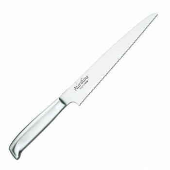 オールステンレスでお手入れしやすい 国内生産にこだわり、長く続く切れ味と錆びにくい高品質を実現。オールステンレスの包丁は洗いやすく、汚れが溜まらず衛生的にお使いいただけます。発売以来、プロから一般家庭まで多くのファンに愛されている庖丁です。波刃のついたナイフは押しても引いても切れるため、食パンをスライスするのに適します。パンくずが出にくく断面もキレイ。スライサーとしてハムなどの食材も薄くスライスすることができます。 握りやすいハンドル ハンドルは空洞構造で軽く設計されています。刀身をハンドルで挟み込み溶接しているため丈夫で折れにくく長持ちします。握りのデザインは指がかかり、握りやすいため滑りにくい形状です。水や油の付いた手でも握りやすく、滑りにくくなっています。 【商品仕様】 サイズ/全長約350mm、刃渡り約220mm 材 質/刀身:モリブデン・バナジウム鋼 柄:18-8ステンレス鋼 日本製 感動をお届けする「世界に一つの贈り物」 名入れギフトの詳細はこちら! ↓ ↓ ↓感動をお届けする「世界に一つの贈り物」 名入れギフトの詳細はこちら! ↓ ↓ ↓ <<ラッピング・のし・メッセージカード無料で承ります。当店のギフトサービスの詳細はこちら!>> 詳しくは以下のバナーをご確認ください。 ↓ 当店のお買い物でご利用いただけるクーポンあります! <<獲得ページはこちら!>> ↓ 感動をお届けする「世界に一つの贈り物」 名入れギフトの詳細はこちら! ↓ ↓ ↓ 13,402円 税込 送料込 カードOK キッチン雑貨のパレット燕三条本店 ![]() | ||