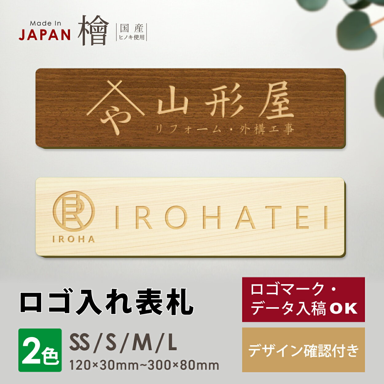 商品説明 用途 オフィス、店舗用の木製表札 サイズ [SS] 12cm×3cm[S] 15cm×3.5cm[M] 23cm×6cm[L] 30cm×8cm※厚さ7mm 材質 国産ひのき材(愛知認証材)+両面テープ 塗装 ナチュラルカラーは無塗装です。ダークブラウンは表面を塗装しています。 植物油由来の自然塗料を使用しています。有害物質を一切含有せず、食品と同レベルの高い安全性があります。 (塗装後しばらくの間は若干油特有のニオイがありますが、だんだん薄くなってきます) 詳細 国産... 5,400円 税込 送料込 カードOK レビュー5件 表札 サインプレート かたちラボ ![]() | ||