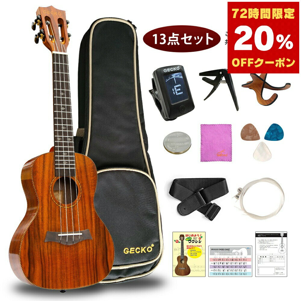 商品説明★ すぐにはじめられるウクレレ13点セットです★ 23インチコンサートは洗練された音色と快適な演奏感です★ スケール長 約39cm★ 製品備え付けの弦はイタリアのAquila製★ スタンド台はインテリアとしてウクレレを飾ることができます※メーカーの都合により、パッケージ・仕様・成分・生産国等は予告なく変更になる場合がございます。※上記理由でのご返品はお受けできませんので、事前お問合せなどご注意のほど宜しくお願いいたします。スペック* 商品サイズ: 62* ボディ幅: 21* ボディ厚: 7* ナット幅: 3.5* 材質: [表面]スプルース単板(Canada)、[ボディ]ゼブラウッド、[ネック]オクメ、[指板]ローズウッド* 弦数: 4* スケール長: 約39cm* フレット: 18* ロゴ: GECKO* 備え付けの弦: Aquila製* ソフトケース: 有り* 付属品: ウクレレケース、コード表、取扱説明書、国内保証書、チューナー、電池、ピック、ストラップ、スタンド、クロス、カポ、予備の弦* 生産国: 中国 13,990円 税込 送料別 カードOK 総合通販PREMOA 楽天市場店 ![]() | ||