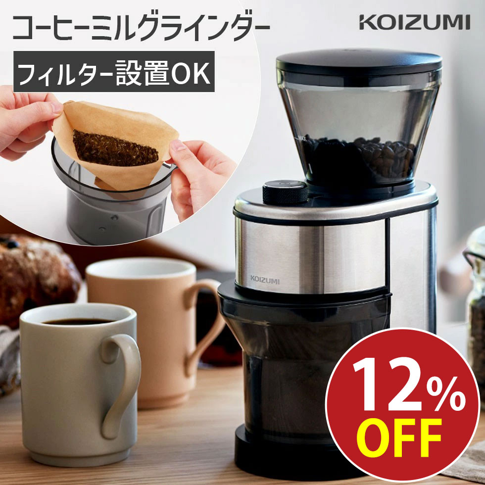 手軽にこだわりの一杯が楽しめる ミル精度が高く挽目が均一なコニカル式。お好みの粗さに挽け、エスプレッソ用の細挽きにも対応。 ステンレス製のコニカル式ミル 上下ステンレスの臼で豆をすり潰します。摩擦熱が少なく、粒度のバラつきが少ないため、より美味しいコーヒーに仕上げられます。 粗さ調節15段階 エスプレッソからフレンチプレスまで細やかな粒度に調節可能。 受け皿にフィルター設置OK ●挽いたあと、そのまま淹れられて便利。 ●静電気で粉が受け皿にくっつくイライラを軽減。 ※コーヒーフィルターは付属していません。 市販の2~4杯用サイズ(台形型または円錐型)をご使用ください。 場所を取らないスリムデザイン 置く場所も収納も悩まない約11.5cm幅。 フィルターなしでも使えます 受け皿最大容量約60g ※粗さ調節7~9の中細挽き時。 フィルター装着時:最大約30g。 コーヒー粉を取り出すときの注意点 挽いた粉が内部に残ることがあるため 電源プラグを抜いた後受け皿を取り出すまえに本体を少し傾け、2・3回優しくたたいて粉をおとしてから取り出してください。 挽き時間の目安 ※メーカー実測値。豆の種類や使用環境によって若干異なるため、あくまで目安としてご参考ください。 ※ホッパーに豆が残った場合は追加で回してください。 使い勝手の良い機能 タイマー式 ダイヤルで10~90秒を設定、自動で止まるので安心です。 滑り止め 本体底面に滑り止めがあり、動作中の振動を抑える効果もあります。 お手入れかんたん ホッパーや上臼を取り外しできます。お手入れに便利な掃除用ブラシが付属。 ■ホッパーがはまらないときの対処法 稀にホッパーをはめる部分(本体側の溝)がズレてしまい、うまく嵌まらなくなることがあります。マイナスドライバーなどを溝に差し込み、矢印方向に回してズレを直してください。 商品内容 おすすめのコーヒー関連商品 ポータブルコーヒーグラインダー詳しくはこちら ≫ 2wayコーヒー&ミキサー詳しくはこちら ≫ 電動コーヒーミル詳しくはこちら ≫ 関連記事 コーヒーグラインダー KKM-0400ブログ 幸せな一杯を楽しむコーヒーグラインダー 詳細はこちら 【商品仕様】メーカー名:コイズミ 電源:AC100V 50/60Hz 消費電力:約130W 本体サイズ:約115(W)×180(D)×283(H)mm 質量:約1.4kg 定格時間:90秒 最大容量:ホッパー:約160g受け皿:約60g(粗さ調節7~9中細挽き時。フィルター装着時は約30g) 粒度目盛り:15段階 ダイヤル(時間設定):9段階(10~90秒) 材質(刃):ステンレス コード長:約1.0m 付属品:掃除用ブラシ、取扱説明書(保証書付) 本体保証期間:1年間 kkm-0400/s <検索ワード> コーヒー豆 挽く 豆挽き器 コーヒーグラインダー 電動ミル うす式ミル 臼式 コニカル式コーヒーミル エスプレッソミル コーン式 コーヒーミルグラインダー 珈琲ミル 機械 4杯 ステンレスコーヒーミル おしゃれ 電動ミルグラインダー 珈琲グラインダー ミルグラインダー スリム 誕生日 プレゼント ギフト 小泉成器 エスプレッソグラインダー 敬老の日 還暦祝い お祝い 新築祝い 母の日 父の日 こいずみ KOIZUMI 小泉 フィルターセット ハンドドリップ フレンチプレス ネルドリップ エスプレッソ サイフォン パーコレーター コーヒーメーカー ウォータードリップ 水出しコーヒー 6,980円 税込 送料込 カードOK レビュー31件 公式コイズミオンラインショップ ![]() | ||