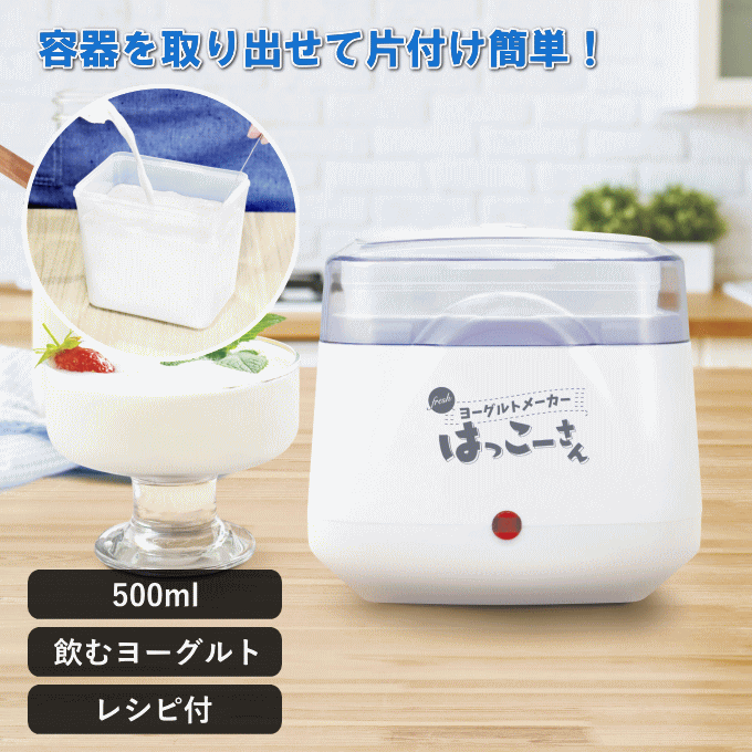 ヨーグルトメーカー はっこーさんの解説 25gのヨーグルトが500gに増える!コスパ抜群のヨーグルトメーカー。 準備する食材は牛乳と少量のヨーグルトだけでOK。専用容器に入れてよくかき混ぜた後、本製品にセットして発酵させるとヨーグルトやのむヨーグルトが簡単に作れます。カラダがよろこぶ発酵食品を、毎日の食卓に。すぐに作れるアレンジレシピ付き。 ヨーグルトメーカー はっこーさんの詳細 サイズ (約) 13.5×12×14cm 重量(約) 430g(専用容器含む) 材質 ABS、P... 2,380円 税込 送料別 カードOK AZmax Direct ![]() | ||