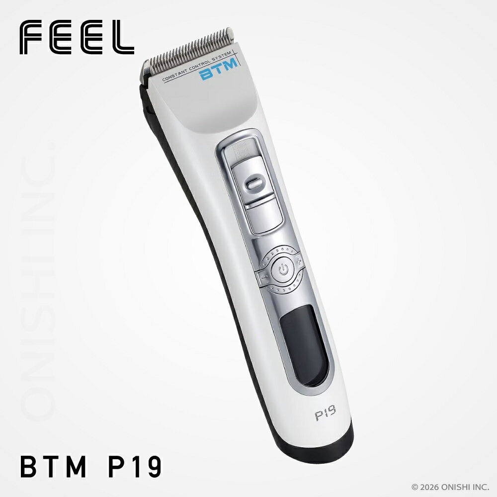 ■髪質に合わせ5000回転/分~7000回転/分をボタン一つで4段階に調節出来る最新式のクリッパーです。 ■クリッパーに対しての負荷状態、回転数、使用可能時間が一目で確認出来きます。 ■上下スライド式ボタンで、簡単に刈り高調整ができます。 USABLE TIME / 250minutes ■コードレス状態でなんと最大250分稼働します。充電する時間がない忙しい状況でもストレス無く安心して施術出来るハイパワークリッパーです。 5000RPM ・250min / 5500RPM・235min / 6000RPM ・220min / 6500RPM・205min / 7000RPM・190min OIL WARNING LAMP ■一定の使用時間を経過した場合、オイルを差すよう赤いランプでお知らせする機能が装備されています。 ※液晶のデザインは変更になる場合がございます。 RPM CONTROL SYSTEM ■髪の量を感じてスピードをコントロールするだけではなく、バッテリーの残量に関係なく回転数を一定に保つRPMコントロールシステムを搭載しています。 WING BLADE ■ブレード(刃)は40°の刃角のため、鋭い切れ味です。 また高級セラミックを使用しているので、丈夫で長く切れ味が持続します。 製品名 FEEL BTM P19 素材 ABS樹脂・ステンレス サイズ H186mm×W45mm×D35mm 重量 231g 刈高 1.0mm~ 刃幅 45mm 電源方式 充電・交流式(コードレス・AC電源両対応) 定格電圧 100V-240V(フリーボルト) 定格周波数 50/60 Hz バッテリー 3.7V/2600mh リチウムイオンバッテリー 充電時間 フル充電まで3時間 稼働時間 250分連続使用 防水加工 水洗い可能(ヘッド部) アタッチメント 3mm,6mm,9mm,12mm 付属品 充電スタンド・アダプター・アタッチメント4種・クリーニングブラシ・オイル 注意事項 ★ご注文のタイミングにより欠品のおそれがございます★ メーカー取り寄せのため、通常商品よりお時間をいただく可能性がございます。 ●お使いのモニター・液晶の設定や照明など、ご覧いただいている環境により実際の色味と異なって見える場合がございます。 ●パッケージやデザインが予告なく変更になる場合がございます。ご了承ください。 18,865円 税込 送料込 カードOK ON 楽天市場店 ![]() | ||