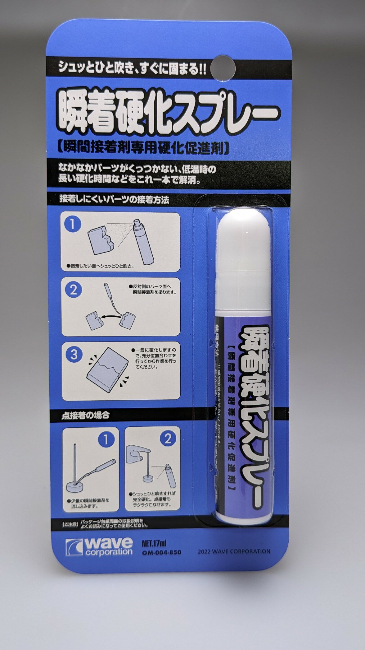 799. WAVE(ウェーブ) 瞬着硬化スプレー ■製品仕様 ■NET 17ml ※店舗と在庫を共有している為、 お取り寄せとなる場合がございます。 ※商品画像は試作品またはイメージです。 実際の商品とは多少異なる場合があります。 ■オススメポイント なかなかパーツがくっつかない、低温時の長い硬化時間などを解消。接着したい面へスプレーして反対側のパーツ面へ瞬間接着剤を塗り使用します。点接着の場合は、接着剤を流し込んだあとスプレーすれば完全硬化します。2023年5月29日価格改定致しました。 ★好評発売中 ※ご注文前に必ずこちらをお読みください 935円 税込 送料別 カードOK レビュー2件 ビージェイ ![]() | ||