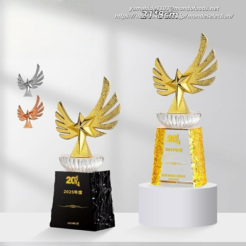 オーダーメイドトロフィー制作プロセス お客様のご要望に合わせて完全カスタマイズのクリスタルトロフィーを制作いたします 01 刻印内容のご連絡 💬 トロフィーに刻印したい内容(会社名、受賞者名、受賞理由、日付など)を当社までお知らせください。メールneheme@shop.rakuten.co.jpまたはお問い合わせフォームよりご連絡いただけます。 02 デザインのご提案 🎨 お預かりした内容をもとに、トロフィーのデザイン案(レイアウト、... 5,999円 税込 送料込 カードOK NEHEME ![]() | ||