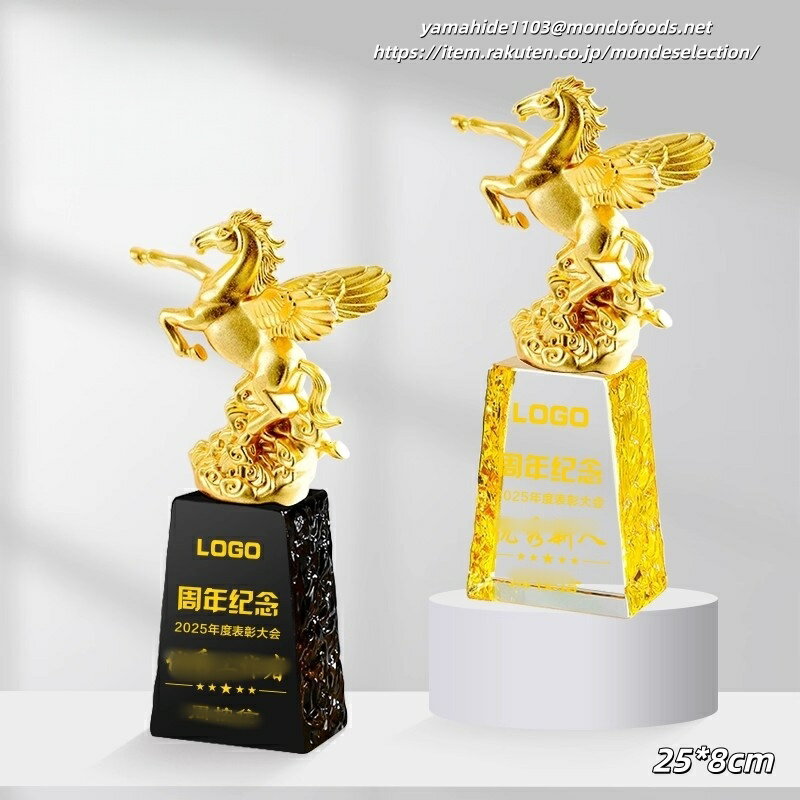 商品情報STEP1ご注文のお手続きホームページよりトロフィーサイズやオプションをお選びいただきましてご注文のご指示をいただきます。ご注文完了後、ご登録いただいたお客様のメールアドレスに自動返信メールが届きますのでご注文内容にお間違えがないかご確認ください。STEP2担当アドバイザーとお打ち合わせ当社スタッフがご注文内容を確認し、お電話もしくはメールにてお客様のご希望をヒアリングさせていただきます。STEP3デザインの作成当社デザイナーがデザインする場合(約1〜2営業日)ご注文直後に届く自動返信メールに、デザインしたいロゴデータやお写真、原稿をメールで当社までお送りください。いただきました内容をもとに当社にてデザインを作成いたします。デザイン作成後のデザイン修正もご対応させていただきますのでご安心ください。※デザイン作成につきましてはご注文する前にはまたはご注文確定後の対応ともなります。お客様がデザインされる場合(AIまたはPDFデータでのご入稿)※カット面については当社デザイナーにて修正をさせていただきます。最終デザインデータについては必ずお客様にご確認いただいてから製作に取り掛からせていただきます。STEP4トロフィーの製作開始デザイン決定後、当社にて製作に取り掛からせていただきます。製作開始から約5〜7営業日で商品が完成いたします。・アクリルへ印刷開始最新のフルカラー印刷機で無地のアクリル板に印刷します。グラデーションや写真など細かいデザインももちろん鮮明に表現いたします。・レーザーでアクリルカット高機能レーザー加工機で印刷を行ったアクリル板をデザインに沿って工業用レーザー加工機できれいにカットします。STEP5商品完成・お届け商品が完成次第、お客様ご指定のご住所にお届けいたします。出荷時には当社発送担当よりメールで伝票番号とともに発送のお知らせをさせていただきます。発送後から1〜3日でお客様のお手元に到着となります。美しいクリスタルトロフィー当社のクリスタルトロフィーは、特別な瞬間を記念するための完璧なアイテムです。高品質なクリスタル素材から作られたこのトロフィーは、透明感と輝きが魅力です。授賞式や企業イベント、スポーツ大会など、さまざまなシーンで利用できます。特徴:上質な素材:高品質クリスタルを使用し、耐久性と美しさを兼ね備えています。カスタマイズ可能:お名前や特別なメッセージを彫刻して、唯一無二のトロフィーを作成できます。多様なデザイン:様々な形状とデザインがあり、用途に応じて選べます。サイズと仕様:高さ:27cm幅:8cmおすすめの用途:優秀賞や参加賞の授与ビジネスの表彰や感謝状記念日や特別なイベントのプレゼントあなたの大切な瞬間を、当社のクリスタルトロフィーで彩りましょう。今すぐご注文いただき、特別な贈り物を手に入れてください!おすすめ用途:イベント表彰・社内表彰・プレゼントなど27*8cm 文字彫刻無料 トロフィー スポーツ大会 コンテスト コンクール 記念品 表彰シーン コンパクトトロフィー 煌びやかな 豪華な チャンピオントロフィー 高級感 クリスタルトロフィー バリエーション豊富 台座 高級感抜群 美しい ゴルフコンペ デザイン ワンランク上の表彰商品をお探しの方にオススメ 5 7,500円 税込 送料込 カードOK モンドセレクション ![]() | ||