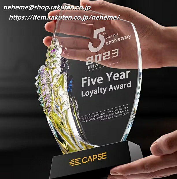オーダーメイドトロフィー制作プロセス お客様のご要望に合わせて完全カスタマイズのクリスタルトロフィーを制作いたします 01 刻印内容のご連絡 💬 トロフィーに刻印したい内容(会社名、受賞者名、受賞理由、日付など)を当社までお知らせください。メールまたはお問い合わせフォームよりご連絡いただけます。 02 デザインのご提案 🎨 お預かりした内容をもとに、トロフィーのデザイン案(レイアウト、フォント、サイズなど)を作成し、お... 3,999円 税込 送料込 カードOK ショップカプア ![]() | ||