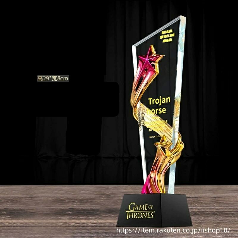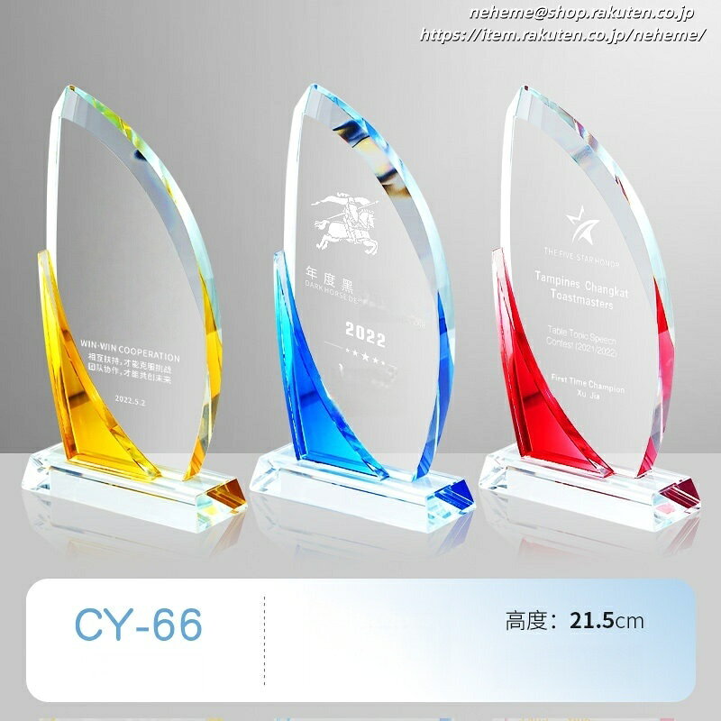 商品情報トロフィーの思いトロフィーでは「表彰文化」を通じて、日本の褒める文化を育むことに真剣に取り組んでいます。そのため、物販からコンサルティングまで幅広い分野で活動を展開したいと考えています。褒める行為は、人に自信を与え、ポジティブな気持ちを引き出します。表彰文化を通じて、多くの人が褒められ、さらにポジティブになることで、まずは褒められた人自身がポジティブに変わり、その姿が周囲にも良い影響を与えます。地域がポジティブになれば、日本全体も明るくなるでしょう。最終的には、表彰文化を通じて世界をより良い方向に変えることが私たちの使命です。水晶賞美しさと卓越性の象徴、私たちの水晶賞は特別な瞬間を永遠に記憶するための完璧なアイテムです。高品質なクリスタルで作られ、細部にこだわったデザインが特徴です。各賞は、あなたの努力や成功を称えるためにカスタマイズできます。特徴:素材: 高級クリスタルサイズ: 多様なサイズから選べますカスタマイズ: 名前やメッセージを刻印可能用途: ビジネス、スポーツ、学校の表彰など使い方:特別なイベント、受賞式、企業のパーティーなどでの贈呈に最適です。受取人にとって、思い出に残る素晴らしいプレゼントとなるでしょう。ご購入:この美しい水晶賞を手に入れて、特別な瞬間を祝いましょう。今すぐ注文し、あなたの成功を称えましょう!28*10cm オリジナルデザイン彫刻可能 文字彫刻無料トロフィー 優勝カップ ウイナーズカップ 優勝杯 大会記念 ゴルフコンペ スポーツ大会 記念品 オリジナルトロフィー trophy とろふぃー 送料無料 名入れ ロゴマークOK トロフィー クリスタルトロフィー ガラストロフィー 優勝トロフィー 記念品 表彰品 表彰 ゴルフトロフィー 5 7,500円 税込 送料込 カードOK モンドセレクション ![]() | ||