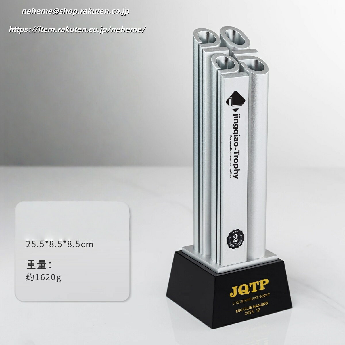 オーダーメイドトロフィー制作プロセス お客様のご要望に合わせて完全カスタマイズのクリスタルトロフィーを制作いたします 01 刻印内容のご連絡 💬 トロフィーに刻印したい内容(会社名、受賞者名、受賞理由、日付など)を当社までお知らせください。メールneheme@shop.rakuten.co.jpまたはお問い合わせフォームよりご連絡いただけます。 02 デザインのご提案 🎨 お預かりした内容をもとに、トロフィーのデザイン案(レイアウト、... 3,999円 税込 送料込 カードOK NEHEME ![]() | ||