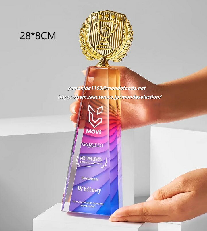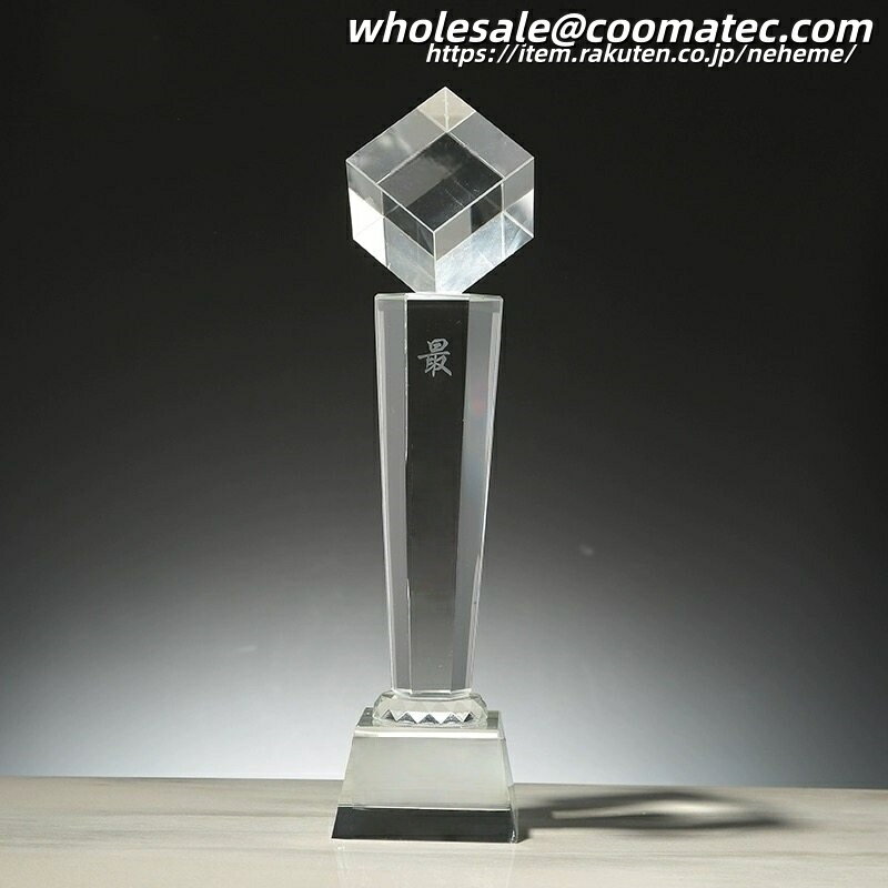 トロフィーの豊富なラインナップはこちらで随時更新中です。お気に入りが見つからない場合は、お手持ちの画像を頂ければ代わりにお探しします! 【価格について】 どのトロフィーも価格は相談可能ですので、どうぞご安心ください。 【ご注文の流れ】 注文 注文備考欄に用途や彫刻したい文字をご入力ください。デザインのご要望などもあればご記載ください。 デザイン資料の送付 オリジナルデザインや彫刻したいロゴ・写真がある場合は、注文確認メールに添付してご返信ください。 デザインの確認/修正 メールでやり取りしながら、ご希望に合わせて適宜修正し原稿を作成します。 納品・発送 原稿確定後、1週間を目安に発送いたします。 【具体的な手順】 彫刻したい内容をお問い合わせフォームまたはメール(wholesale@coomatec.com)でお送りください。 お客様のご希望に沿ってデザインを作成し、修正があれば最終案が決まるまで何度でも対応いたします。 また、編集可能なPDFをお渡しすることも可能です。ご自身でデザイン済みのデータがあれば、そのまま彫刻することもできます。 【彫刻について】 ロゴ・文字の彫刻は無料です。ロゴをご提供の場合は、高解像度のベクターデータ(AI, EPS, PDF等)をご準備ください。 【不良品・破損について】 トロフィーは壊れやすい製品のため、万一お受け取り後に破損等の問題がございましたら、すぐにご連絡ください。無料で新品をお送りします。 破損品は返品不要で、お客様の方で処分していただいて結構です。 配送について デザインが確定後、1週間以内に完成品をお届けいたします。国内配送は配送料無料で、丁寧に包装して発送いたします。 商品情報 おすすめ 【各種記念】 創業記念 入園記念 入学記念 卒業記念 叙勲記念 初詣・参拝記念 成人式記念 発表会・展示会記念 設立記念 受賞記念 ホールインワン記念 敬老記念 海外旅行記念 落成記念 【各種表彰】各種表彰業績表彰 優良販売店表彰 安全運転表彰 善行表彰 名誉(市民)表彰 七夕飾付コンクール 新製品コンクール 永年勤続表彰 功労功績表彰 技能表彰 改善提案表彰 協力事業所表彰 ディスプレ−・コンテスト 販売コンクール 【各種祝事】結婚祝 入社祝 賀寿祝 快気祝 成人祝 入学祝 誕生祝 新築祝 栄転祝 卒業祝 【各種功労賞】功績賞 協力賞 皆勤賞 優秀社員賞 提案賞 目標突破賞 生産達成賞 善行賞 奨励賞 名誉○○賞 永年勤続賞 功労賞 精勤賞 勤続○○年賞 優秀従業員賞 目標達成賞 無事故賞 卓越賞 遂行賞 知事賞 【共通賞名一覧】大臣賞 市長賞 会頭賞 理事長賞 町長賞 議長賞 委員長賞 支局長賞 社長賞 常務賞 課長賞 勝利○○賞 最優秀○○賞 月間賞 大関 小結 十両 敢闘賞 ハッスル賞 ファインプレー賞 ラッキー賞 団体賞 努力賞 特別賞 総監賞 頭取賞 区長賞 村長賞 組長賞 局長賞 会長賞 専務賞 部長賞 ○○新聞社賞 総合○○位 年間賞 横綱 関脇 前頭 殊勲賞 技能賞 フェアプレー賞 ドンジリ賞 応援賞 記録賞 新人賞 参加賞 特選特賞、入選入賞、佳作企画賞、アイデア賞、演技賞、熱演賞、残念賞、大衆賞、ユーモア賞、歌唱賞、作者賞、作詞賞、作曲賞、作品賞、主演賞、助演賞、新作賞、秀作賞、考案賞、発明賞、○○女王、ズバリ賞、ミス○○ 【文化行事】写真コンクール、絵画コンクール、音楽コンクール、書道大会、珠算大会、発明展、カルタ大会、川柳・俳句・短歌大会 【レジャー関係】ビーチカーニバル、美人コンテスト、梅まつり、詩吟大会、民謡大会、雪まつり、桜まつり、夏まつり会 【ご注文の流れ】 【オーダーメイドトロフィー制作の流れ】 1. 商品ご注文 まずは商品をお選びいただき、刻印したい内容(文字またはロゴ)をご指定ください。 ※刻印サービスは無料で承っております。 2. デザイン案作成 お客様からお預かりした内容をもとに、専任デザイナーがトロフィーのデザイン案を作成いたします。 3. デザイン確認 作成したデザイン案をお客様にご確認いただき、ご要望や修正点がございましたらお知らせください。 4. デザイン調整 お客様のご要望に沿ってデザインを修正いたします。 納得いただけるまで何度でも調整可能です。 5. 制作開始 最終デザインのご承認をいただきましたら、職人がクリスタルトロフィーの制作に取り掛かります。 このクリスタルトロフィーは、技術コンテストやホビーイベント、パーティーなど多様なシーンで活用できる賞品です。無料で文字彫刻が可能で、賞名や個人名、日付、主催者名などを刻むことができます。さらに、ロゴマークやメッセージの彫刻も追加料金なしで対応可能です。完成イメージをPDFデータで確認できるため、安心してオーダーいただけます。特別なイベントをより記念すべきものにするための最適な選択です。トロフィーの豊富なラインナップはこちらで随時更新中です。お気に入りが見つからない場合は、お手持ちの画像を頂ければ代わりにお探しします! 【価格について】 どのトロフィーも価格は相談可能ですの