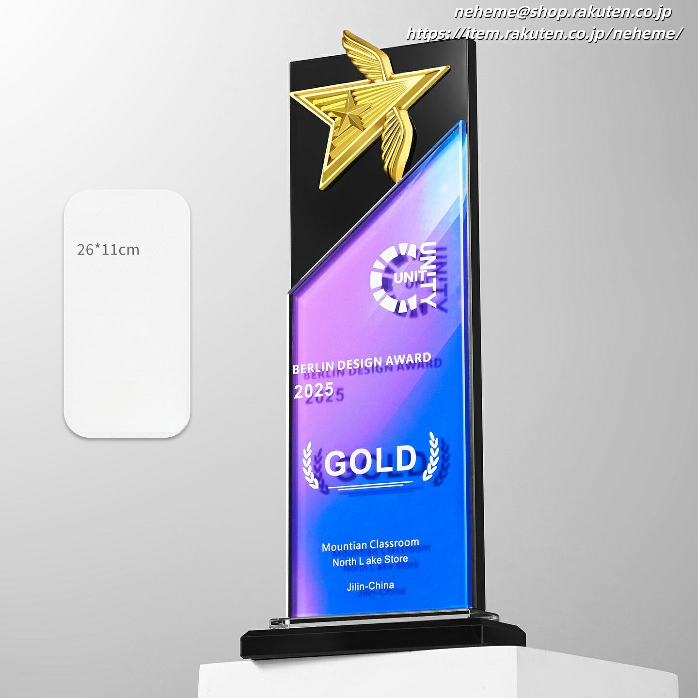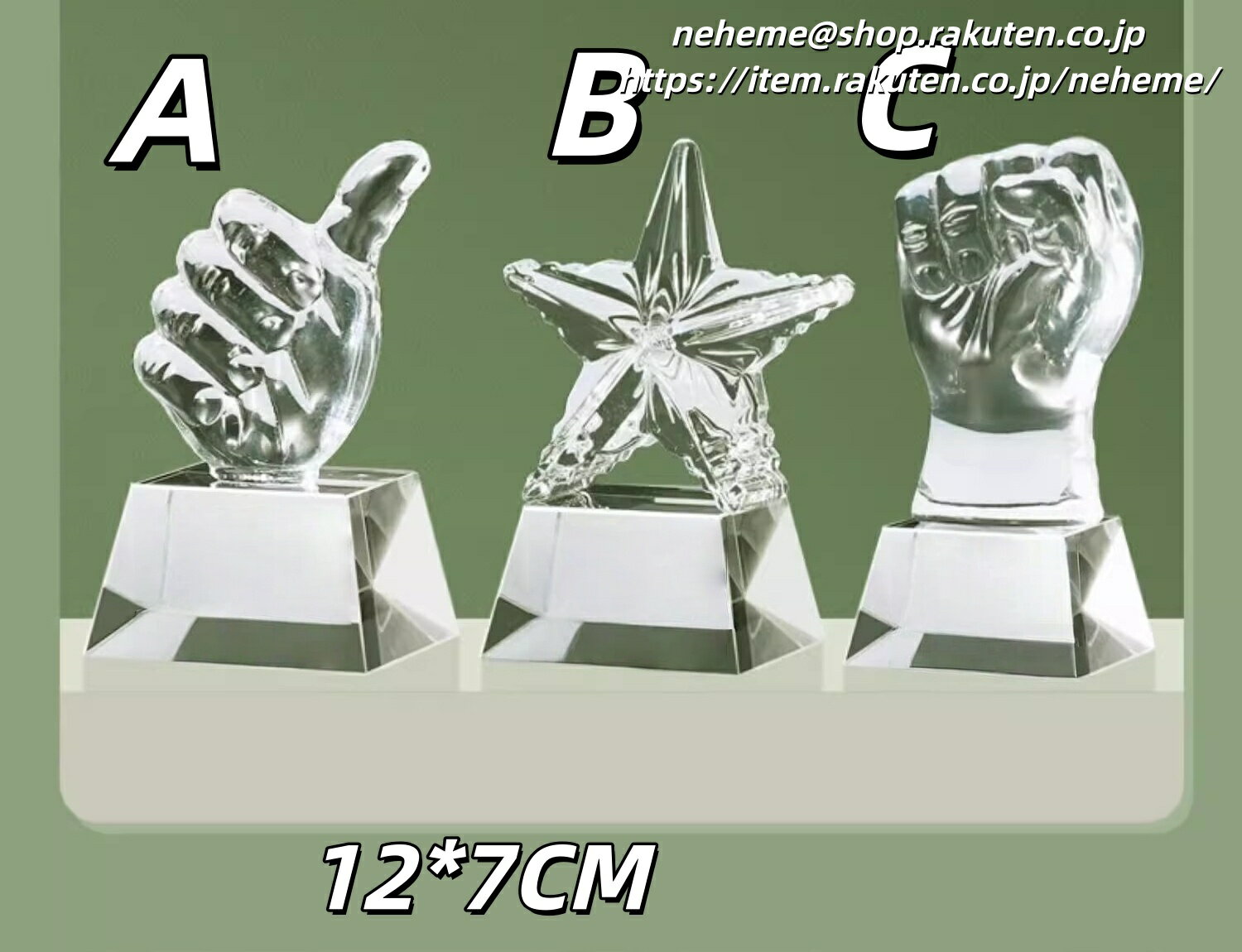 オーダーメイドトロフィー制作プロセス お客様のご要望に合わせて完全カスタマイズのクリスタルトロフィーを制作いたします 01 刻印内容のご連絡 💬 トロフィーに刻印したい内容(会社名、受賞者名、受賞理由、日付など)を当社までお知らせください。メールneheme@shop.rakuten.co.jpまたはお問い合わせフォームよりご連絡いただけます。 02 デザインのご提案 🎨 お預かりした内容をもとに、トロフィーのデザイン案(レイアウト、... 4,999円 税込 送料込 カードOK NEHEME ![]() | ||