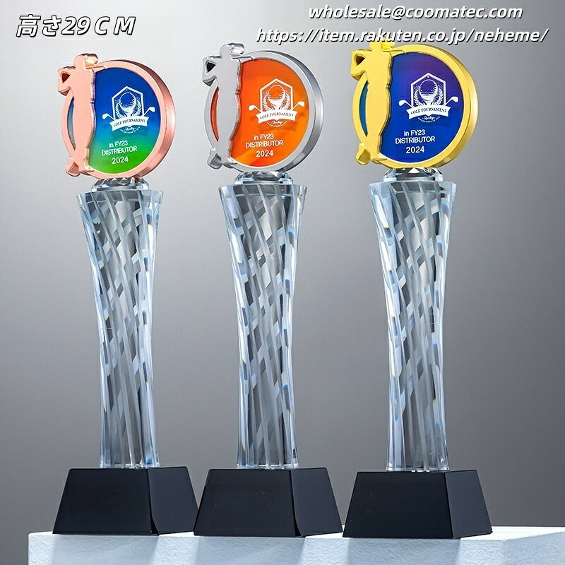 トロフィーの豊富なラインナップはこちらで随時更新中です。お気に入りが見つからない場合は、お手持ちの画像を頂ければ代わりにお探しします! 【価格について】 どのトロフィーも価格は相談可能ですので、どうぞご安心ください。 【ご注文の流れ】 注文 注文備考欄に用途や彫刻したい文字をご入力ください。デザインのご要望などもあればご記載ください。 デザイン資料の送付 オリジナルデザインや彫刻したいロゴ・写真がある場合は、注文確認メールに添付してご返信ください。 デザインの確認/修正 メールでやり取りしながら、ご希望に合わせて適宜修正し原稿を作成します。 納品・発送 原稿確定後、1週間を目安に発送いたします。 【具体的な手順】 彫刻したい内容をお問い合わせフォームまたはメール(wholesale@coomatec.com)でお送りください。 お客様のご希望に沿ってデザインを作成し、修正があれば最終案が決まるまで何度でも対応いたします。 また、編集可能なPDFをお渡しすることも可能です。ご自身でデザイン済みのデータがあれば、そのまま彫刻することもできます。 【彫刻について】 ロゴ・文字の彫刻は無料です。ロゴをご提供の場合は、高解像度のベクターデータ(AI, EPS, PDF等)をご準備ください。 【不良品・破損について】 トロフィーは壊れやすい製品のため、万一お受け取り後に破損等の問題がございましたら、すぐにご連絡ください。無料で新品をお送りします。 破損品は返品不要で、お客様の方で処分していただいて結構です。 配送について デザインが確定後、1週間以内に完成品をお届けいたします。国内配送は配送料無料で、丁寧に包装して発送いたします。 商品情報 おすすめ 【各種記念】 創業記念 入園記念 入学記念 卒業記念 叙勲記念 初詣・参拝記念 成人式記念 発表会・展示会記念 設立記念 受賞記念 ホールインワン記念 敬老記念 海外旅行記念 落成記念 【各種表彰】各種表彰業績表彰 優良販売店表彰 安全運転表彰 善行表彰 名誉(市民)表彰 七夕飾付コンクール 新製品コンクール 永年勤続表彰 功労功績表彰 技能表彰 改善提案表彰 協力事業所表彰 ディスプレ−・コンテスト 販売コンクール 【各種祝事】結婚祝 入社祝 賀寿祝 快気祝 成人祝 入学祝 誕生祝 新築祝 栄転祝 卒業祝 【各種功労賞】功績賞 協力賞 皆勤賞 優秀社員賞 提案賞 目標突破賞 生産達成賞 善行賞 奨励賞 名誉○○賞 永年勤続賞 功労賞 精勤賞 勤続○○年賞 優秀従業員賞 目標達成賞 無事故賞 卓越賞 遂行賞 知事賞 【共通賞名一覧】大臣賞 市長賞 会頭賞 理事長賞 町長賞 議長賞 委員長賞 支局長賞 社長賞 常務賞 課長賞 勝利○○賞 最優秀○○賞 月間賞 大関 小結 十両 敢闘賞 ハッスル賞 ファインプレー賞 ラッキー賞 団体賞 努力賞 特別賞 総監賞 頭取賞 区長賞 村長賞 組長賞 局長賞 会長賞 専務賞 部長賞 ○○新聞社賞 総合○○位 年間賞 横綱 関脇 前頭 殊勲賞 技能賞 フェアプレー賞 ドンジリ賞 応援賞 記録賞 新人賞 参加賞 特選特賞、入選入賞、佳作企画賞、アイデア賞、演技賞、熱演賞、残念賞、大衆賞、ユーモア賞、歌唱賞、作者賞、作詞賞、作曲賞、作品賞、主演賞、助演賞、新作賞、秀作賞、考案賞、発明賞、○○女王、ズバリ賞、ミス○○ 【文化行事】写真コンクール、絵画コンクール、音楽コンクール、書道大会、珠算大会、発明展、カルタ大会、川柳・俳句・短歌大会 【レジャー関係】ビーチカーニバル、美人コンテスト、梅まつり、詩吟大会、民謡大会、雪まつり、桜まつり、夏まつり会 【ご注文の流れ】 【オーダーメイドトロフィー制作の流れ】 1. 商品ご注文 まずは商品をお選びいただき、刻印したい内容(文字またはロゴ)をご指定ください。 ※刻印サービスは無料で承っております。 2. デザイン案作成 お客様からお預かりした内容をもとに、専任デザイナーがトロフィーのデザイン案を作成いたします。 3. デザイン確認 作成したデザイン案をお客様にご確認いただき、ご要望や修正点がございましたらお知らせください。 4. デザイン調整 お客様のご要望に沿ってデザインを修正いたします。 納得いただけるまで何度でも調整可能です。 5. 制作開始 最終デザインのご承認をいただきましたら、職人がクリスタルトロフィーの制作に取り掛かります。 このクリスタルトロフィーは、技術コンテストやホビーイベント、パーティーなど多様なシーンで活用できる賞品です。無料で文字彫刻が可能で、賞名や個人名、日付、主催者名などを刻むことができます。さらに、ロゴマークやメッセージの彫刻も追加料金なしで対応可能です。完成イメージをPDFデータで確認できるため、安心してオーダーいただけます。特別なイベントをより記念すべきものにするための最適な選択です。トロフィーの豊富なラインナップはこちらで随時更新中です。お気に入りが見つからない場合は、お手持ちの画像を頂ければ代わりにお探しします! 【価格について】 どのトロフィーも価格は相談可能ですの