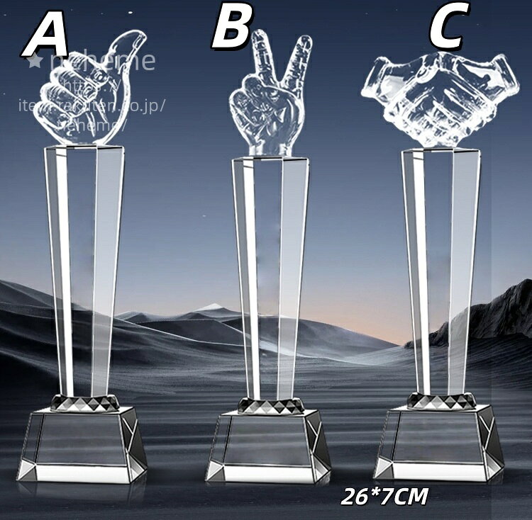 商品情報トロフィーの思いトロフィーでは「表彰文化」を通じて、日本の褒める文化を育むことに真剣に取り組んでいます。そのため、物販からコンサルティングまで幅広い分野で活動を展開したいと考えています。褒める行為は、人に自信を与え、ポジティブな気持ちを引き出します。表彰文化を通じて、多くの人が褒められ、さらにポジティブになることで、まずは褒められた人自身がポジティブに変わり、その姿が周囲にも良い影響を与えます。地域がポジティブになれば、日本全体も明るくなるでしょう。最終的には、表彰文化を通じて世界をより良い方向に変えることが私たちの使命です。表彰 ゴルフトロフィー ゴルフコンペ 名入れ トロフィー クリスタル 優勝 ガラス バスケ サッカー 野球 ゴルフ スポーツ 表彰 名入れ 卒業 卒団 記念品 景品 コンペ MVP 高級 おしゃれ キレイ モダン トロフィー クリスタルトロフィー ガラストロフィー 優勝トロフィー 記念品 表彰品 表彰 ゴルフトロフィー ゴルフコンペ 名入れ トロフィー 優勝 バスケ サッカー 野球 ゴルフ スポーツ 表彰 名入れ 卒業 卒団 記念品 景品 コンペ MVP 高級 おしゃれ キレイ モダン トロフィー 楯 表彰楯 高級 シンプル 金 銀 ゴールド シルバー オシャレ ゴージャス 優勝 トロフィー 優勝 バスケ サッカー 野球 ゴルフ スポーツ 表彰 水晶 賞杯 トロフィー 記念 表彰 名誉 優勝 感謝 彫刻 デザイン 高級感 美しい 透明 輝き 光沢 永久 記録 特別 オーダーメイド カスタマイズ 刻印 メッセージ 感動 祝福 栄光 成功 頑張り 努力 チームワーク 勝利 友情23.5*7.5cm【文字刻印無料】クリスタルトロフィー カスタマイズ アイデア ゴールド シルバー どうしょく メダル枚 企業賞 表彰台 表彰 表彰品 社内表彰 名入れ クリスタル 卒業記念品 卒業 記念品 優勝トロフィー クリスタル 【文字刻印無料】クリスタルトロフィー カスタマイズ ゴルフコンペ 5 9,800円 税込 送料込 カードOK モンドセレクション ![]() | ||