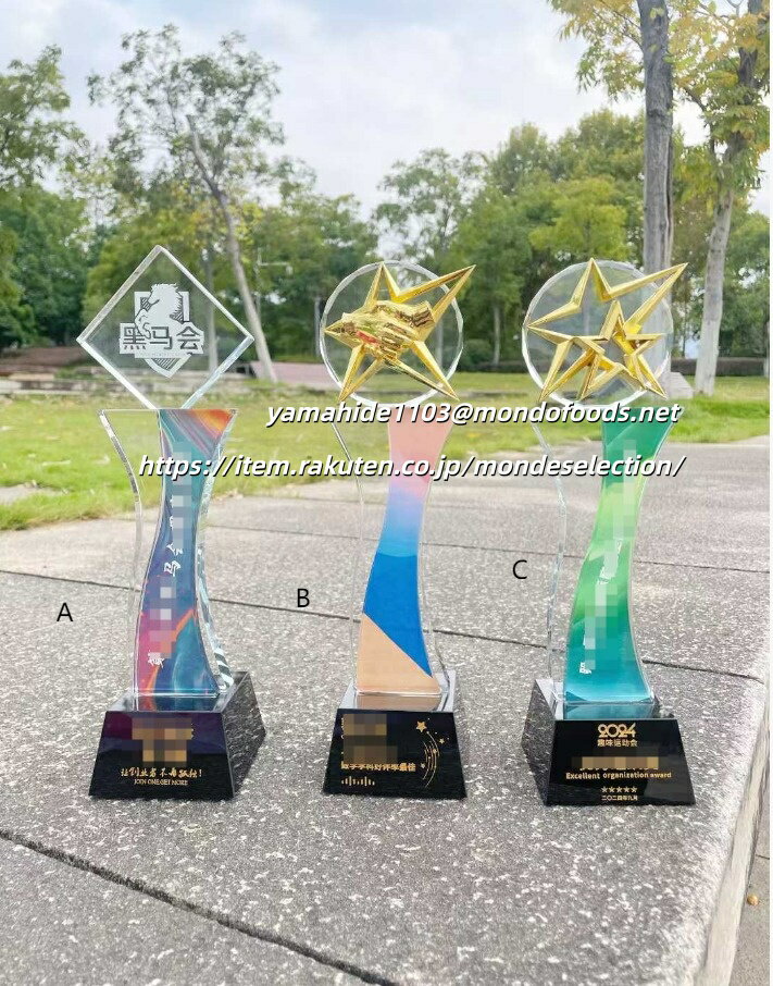 トロフィーご注文について 新規・リピーターの皆様、当店のトロフィーをご覧いただき誠にありがとうございます。 🎨 ご注文の流れ ご希望のデザインや刻印内容を、メール yamahide1103@mondofoods.net またはお問い合わせフォームよりご連絡ください 刻印料金・送料は無料で、材料費のみご負担いただきます ご要望をもとにデザイン案を作成し、お客様にご確認いただきます 修正があれば、ご満足いただけるまで何度でも無料で修正いたします 最終デザインが確定してから、実際の製作に入ります または、PDF編集テンプレートをご自身でデザインいただくことも可能です 🚚 配送と保証 最短で1週間以内にお届けします トロフィーは破損品保証付き - お受け取り後に破損があった場合は、無料で新品をお送りします 破損品の返品は不要で、お手元で処分していただけます 🏆 商品リンク 当店のトロフィー一覧: https://search.rakuten.co.jp/search/mall/%E3%83%88%E3%83%AD%E3%83%95%E3%82%A3%E3%83%BC/?sid=436812 お気に入りのデザインが見つからない場合、お手持ちの画像をお送りいただければ オーダーメイド対応も可能です。価格はご相談に応じます! 🏪 当店ご紹介 当店全商品ページ: https://search.rakuten.co.jp/search/mall/?sid=436812 ? 安心のアフターサービス 当店は全品アフターサービス無料保証を実施しています: お客様都合・当店都合を問わず、不良品・不具合がある場合は無料交換・返金対応 ご不明点やご不?がございましたら、レビュー投稿前にまずはご連絡ください 必ずご満足いただける解決策をご提案します 📞 お問い合わせ先 メール:yamahide1103@mondofoods.net お問い合わせフォーム:各商品ページよりご利用ください 電話:050-6883-3138 何かお困りのことがございましたら、お気軽にご連絡ください! 商品情報 おすすめ 【各種記念】 創業記念 入園記念 入学記念 卒業記念 叙勲記念 初詣・参拝記念 成人式記念 発表会・展示会記念 設立記念 受賞記念 ホールインワン記念 敬老記念 海外旅行記念 落成記念 【各種表彰】各種表彰業績表彰 優良販売店表彰 安全運転表彰 善行表彰 名誉(市民)表彰 七夕飾付コンクール 新製品コンクール 永年勤続表彰 功労功績表彰 技能表彰 改善提案表彰 協力事業所表彰 ディスプレ−・コンテスト 販売コンクール 【各種祝事】結婚祝 入社祝 賀寿祝 快気祝 成人祝 入学祝 誕生祝 新築祝 栄転祝 卒業祝 【各種功労賞】功績賞 協力賞 皆勤賞 優秀社員賞 提案賞 目標突破賞 生産達成賞 善行賞 奨励賞 名誉○○賞 永年勤続賞 功労賞 精勤賞 勤続○○年賞 優秀従業員賞 目標達成賞 無事故賞 卓越賞 遂行賞 知事賞 【共通賞名一覧】大臣賞 市長賞 会頭賞 理事長賞 町長賞 議長賞 委員長賞 支局長賞 社長賞 常務賞 課長賞 勝利○○賞 最優秀○○賞 月間賞 大関 小結 十両 敢闘賞 ハッスル賞 ファインプレー賞 ラッキー賞 団体賞 努力賞 特別賞 総監賞 頭取賞 区長賞 村長賞 組長賞 局長賞 会長賞 専務賞 部長賞 ○○新聞社賞 総合○○位 年間賞 横綱 関脇 前頭 殊勲賞 技能賞 フェアプレー賞 ドンジリ賞 応援賞 記録賞 新人賞 参加賞 特選特賞、入選入賞、佳作企画賞、アイデア賞、演技賞、熱演賞、残念賞、大衆賞、ユーモア賞、歌唱賞、作者賞、作詞賞、作曲賞、作品賞、主演賞、助演賞、新作賞、秀作賞、考案賞、発明賞、○○女王、ズバリ賞、ミス○○ 【文化行事】写真コンクール、絵画コンクール、音楽コンクール、書道大会、珠算大会、発明展、カルタ大会、川柳・俳句・短歌大会 【レジャー関係】ビーチカーニバル、美人コンテスト、梅まつり、詩吟大会、民謡大会、雪まつり、桜まつり、夏まつり会 【ご注文の流れ】 【オーダーメイドトロフィー制作の流れ】 1. 商品ご注文 まずは商品をお選びいただき、刻印したい内容(文字またはロゴ)をご指定ください。 ※刻印サービスは無料で承っております。 2. デザイン案作成 お客様からお預かりした内容をもとに、専任デザイナーがトロフィーのデザイン案を作成いたします。 3. デザイン確認 作成したデザイン案をお客様にご確認いただき、ご要望や修正点がございましたらお知らせください。 4. デザイン調整 お客様のご要望に沿ってデザインを修正いたします。 納得いただけるまで何度でも調整可能です。 5. 制作開始 最終デザインのご承認をいただきましたら、職人がクリスタルトロフィーの制作に取り掛かります。トロフィーご注文について 新規・リピーターの皆様、当店のトロフィーをご覧いただき誠にありがとうございます。 🎨 ご注文の流れ ご希望のデザインや刻印内容を、メール yamahide1103@mondofoods.net またはお問い合わせフォームよりご連絡ください 刻印料金・送料は無料で、材料費のみご負担いただきます ご要望をもとにデザイン案を作成し、お客様にご確認いただきます 修正があれば、ご満足いただけるまで何度でも無料で修正いたします 最終デザインが確定してから、実際の製作に入ります または、PDF編集テンプレートをご自身でデザインいただくことも可能
