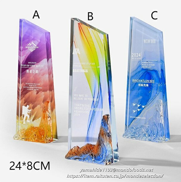 オーダーメイドトロフィー制作プロセス お客様のご要望に合わせて完全カスタマイズのクリスタルトロフィーを制作いたします 01 刻印内容のご連絡 💬 トロフィーに刻印したい内容(会社名、受賞者名、受賞理由、日付など)を当社までお知らせください。メールまたはお問い合わせフォームよりご連絡いただけます。 02 デザインのご提案 🎨 お預かりした内容をもとに、トロフィーのデザイン案(レイアウト、フォント、サイズなど)を作成し、お... 3,299円 税込 送料別 カードOK HOKKAPremium ![]() | ||