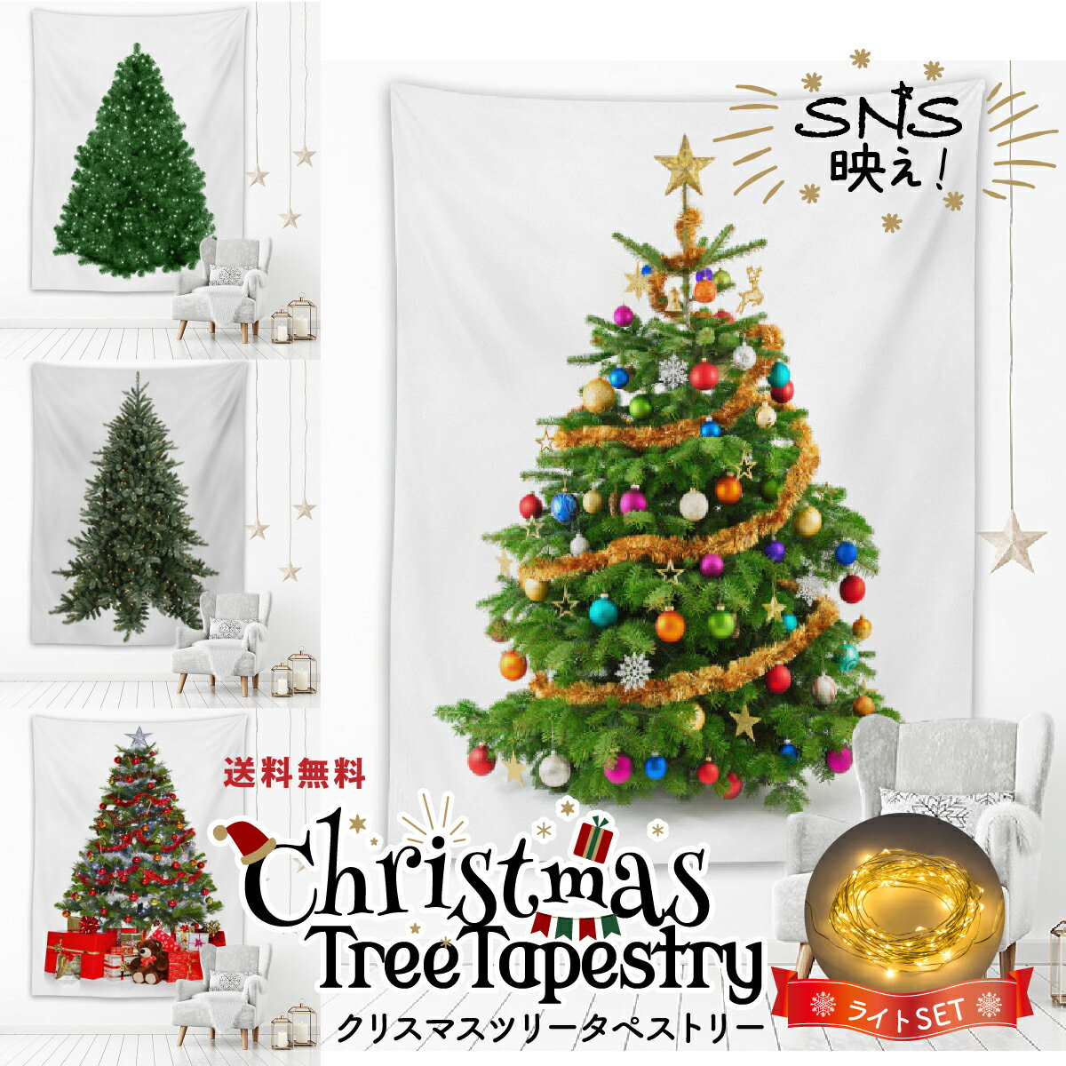 【LEDライト付き】クリスマス タペストリー おしゃれ ライト付き ツリー 北欧 壁掛け 大きい インテリア 大判サイズ オーナメント 特大 ledライト セット イルミネーション 室内 イルミネーションライト セット 雑貨 飾り SNS映えすること間違いなし!クリスマスツリータペストリー お得なライトセットです◎・小さなお子様、ペットがいる・狭くて置き場所がない・収納スペースがない...等の理由でクリスマスツリーを諦めていませんか?タペストリーなら壁にかけるだ... 1,500円 税込 送料込 カードOK レビュー19件 暮らしの雑貨ストア/マシュー ![]() | ||