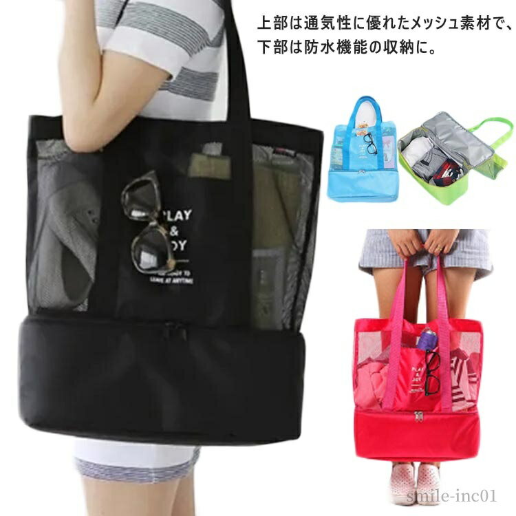 991. 【送料無料】ビーチバッグ ジム 通気性 トートバッグ レディース 【送料無料】ビーチバッグ ジム 通気性 トートバッグ レディース ママバッグ ビーチバッグ 軽量 水陸両用 乾湿分離 プールバッグ 上部は通気性に優れたメッシュ素材で、下部は防水機能の収納に。ドリンク類や食べ物はもちろん、着替えなどを入れるのにもぴったり。通気性、速乾性抜群で濡れた物を入れても大丈夫。水泳或いは温泉へ行く時にこれを持ったら、濡れ服と干し服が分けて置けます。プール、ビーチはもちろん、ジム、スポーツ、レジャーにも!海、プール、フィットネス、温泉などで大活躍。 サイズフリーサイズサイズについての説明サイズ:42*37*15cm、高さ24cm素材ポリエステル色ブルー グリーン ブラック ピンク備考 ●サイズ詳細等の測り方はスタッフ間で統一、徹底はしておりますが、実寸は商品によって若干の誤差(1cm〜3cm )がある場合がございますので、予めご了承ください。●製造ロットにより、細部形状の違いや、同色でも色味に多少の誤差が生じます。●パッケージは改良のため予告なく仕様を変更する場合があります。▼商品の色は、撮影時の光や、お客様のモニターの色具合などにより、実際の商品と異なる場合がございます。あらかじめ、ご了承ください。▼生地の特性上、やや匂いが強く感じられるものもございます。数日のご使用や陰干しなどで気になる匂いはほとんど感じられなくなります。▼同じ商品でも生産時期により形やサイズ、カラーに多少の誤差が生じる場合もございます。▼ 3,700円 税込 送料込 カードOK スマイル・インク ![]() | ||