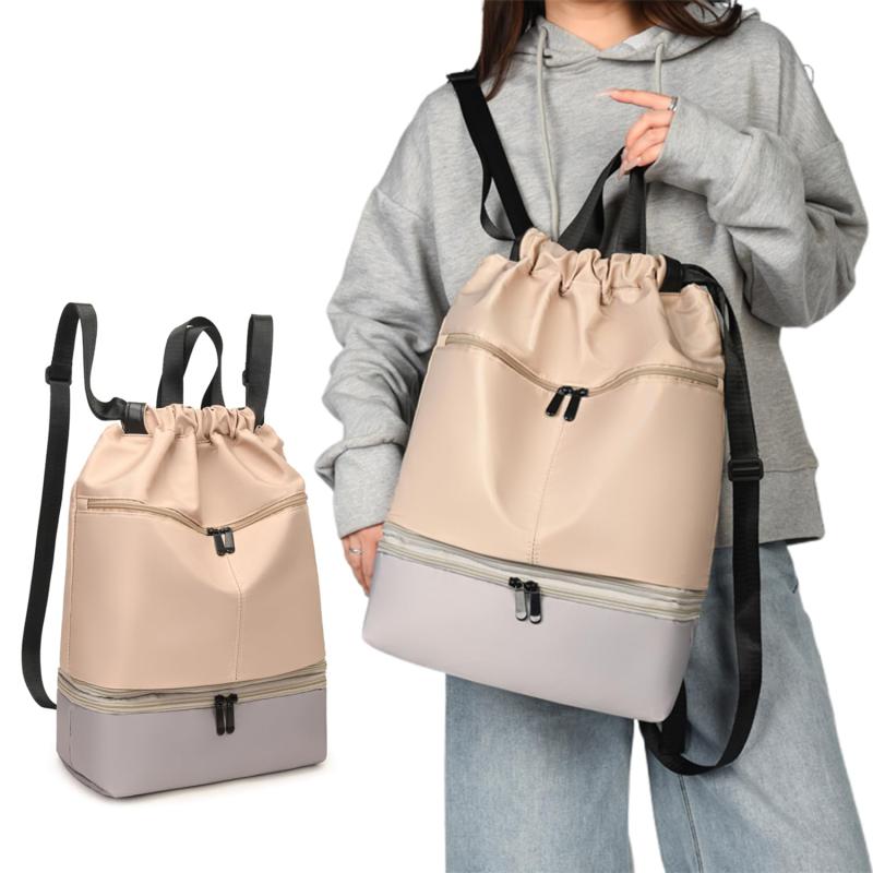 商品コード ts-bag97 商品仕様 【大容量・靴の便利な収納】展開サイズは32X40x20cmで、重量約0.4kg。着替えや洗濯用品がすっぽり入り、お出かけの必需品をたっぷり収納できます。底には、予備のシューズを収納できるダブルジップポケットが付いています。 シューズを衣類と分けて収納できるので、清潔で衛生的です。 巾着ショルダーストラップは長さ調節可能なので、肩にかけるのにちょうどいいサイズに調節できます。 【乾湿分離、靴収納の複数ポケット付き】フロント:盗難防止ファスナーポケットx2(長財布とスマートフォン収納可)底部:ダブルファスナーポケットx1(シューズ専用コンパートメントを装備)メイン:ポケットX2(着替え荷物や濡れた衣類まで対応可能な乾湿分離りエアデザイン)ファスナーポケットx1(鍵など小物の収納が便利に) 【撥水加工】高密度ナイロン素材を採用し、ソフトで着心地がよく、背中にフィットし、折りたたんで簡単に持ち運ぶことができます。 表面は撥水加工が施されているので、運動時の汗を逃がしやすく、雨や水に濡れて汚れてもペーパーで簡単に拭き取れるので、濡れることを気にせず持ち歩くことができる。 【様々な場面で大活躍】ヨガやジムなどの室内スポーツ用のジムバッグや水泳、スイミング教室、ビーチ遊び、海遊びの際の片付け用プールバッグ、部活動、夏休みイベント、温泉旅行、修学旅行、花火大会、お祭り時の着替え衣類や浴衣収納用の巾着バッグ、ちょっとした買い物にもご利用いただけます。 素材 ナイロンなど カラー ブラック、ブルー、ピンク サイズ 32X40x20cm セット内容 バッグ 原産国 中国 注意事項 ※お客様のモニター環境により実物の色合いと若干お色目が異なる場合がございます。 ※商品生地、色合い、コサージュやその他装飾部品の色やデザイン等、生産時期によって、差異が生じます。 そのため、同じ商品を複数点ご購入の場合、場合によって色、コサージュのデザイン等差異がでる場合がございます。ご了承ください。 ※着用?保管頂きます際には他のものとの摩擦などにより色移りや傷になる場合が 御座いますのでご注意ください。 2,592円 税込 送料込 カードOK よいよい ![]() | ||