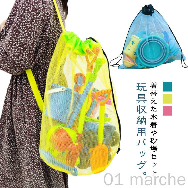 着替えた水着や砂場セット玩具収納用バッグ。お子さんのお片付けの訓練にも最適。ビーチやプールで着替えた水着や砂場セット玩具などを入れるバックとしても使えます夏のビーチに大活躍のアイテム・折りたたんでコンパクトに収納できるメッシュバッグ。メッシュなので砂遊び後の砂も簡単に落ちます、おもちゃを入れて洗ってそのまま干すことができます。濡れても乾かしやすく、シワが出にくく、通気性がとてもよい素材。大きめのおもちゃから小さなおもちゃまで、使わない時はたたんで、まとめて持ち運... 1,080円 税込 送料別 カードOK 01 marche ![]() | ||