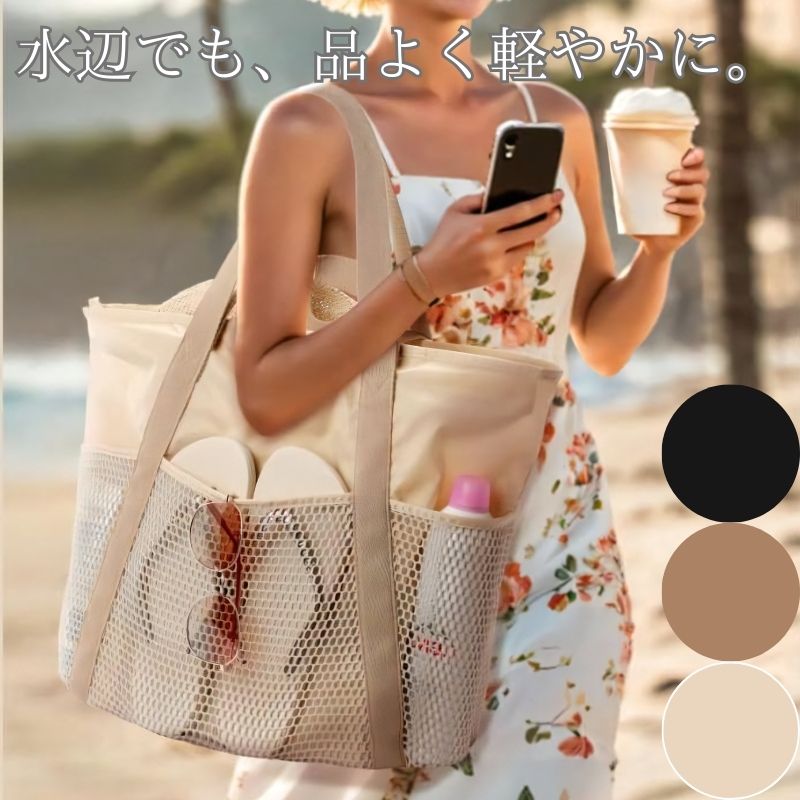 2171. 【予約販売5~12営業日での発送】 ビーチバッグ 大人 レディース メンズ 子供 トート 肩掛け 手提げ メッシュ 通気 大容量 ポケット シンプル 無地 黒 レジャー アウトドア プール 海水浴 ビーチバッグ 大人 レディース メンズ 子供 トート 肩掛け 手提げ メッシュ 通気 大容量 ポケット シンプル 無地 黒 レジャー アウトドア プール 海水浴 該当する性別:ユニセックス色の分類: 黒のビーチ バッグ... 4,769円 税込 送料込 カードOK フロントップ楽天市場店 ![]() | ||